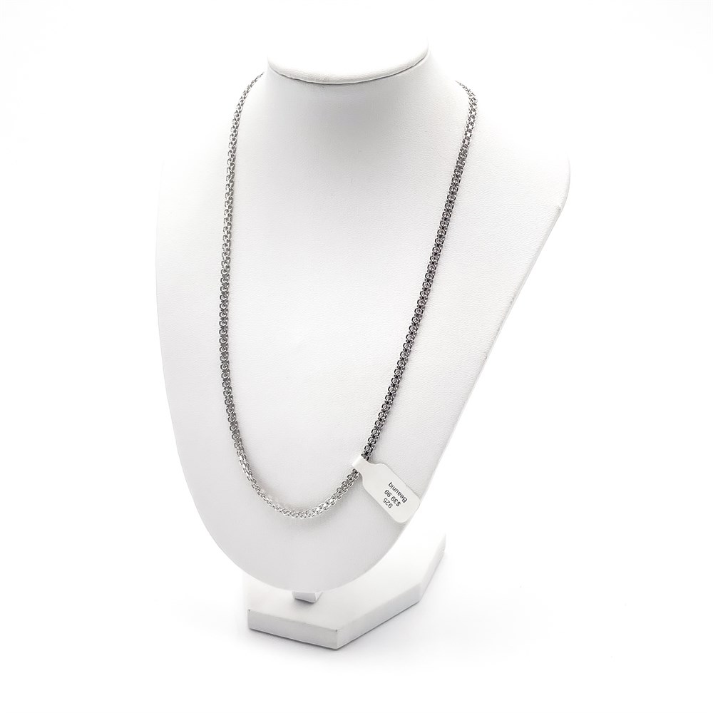 A sterling silver Beauniq rolo chain, also widely known as a belcher chain. It is composed of symmetrical, rounded links that are typically thick and uniform in size. The links in a rolo chain are round on the outside and flattened on the inside. The sturdy, simple design of the rolo chain makes it strong and durable. It resists kinking and tangling and is considered ideal for everyday wear. Necklace has original Beauniq tag. H: 11" Good condition.