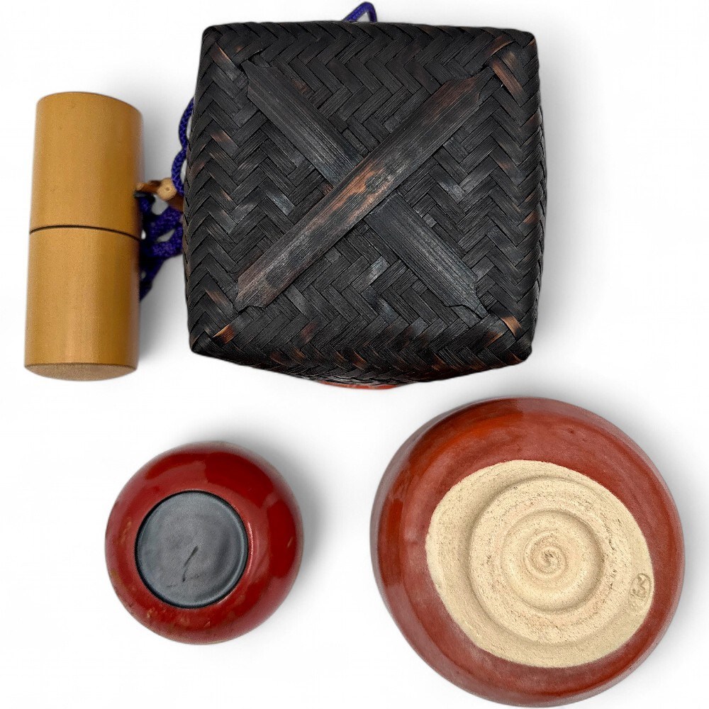 Japanese Nodate Tea Ceremony Set with Raku-Style Chawan Bowl & Basket View Watchlist >