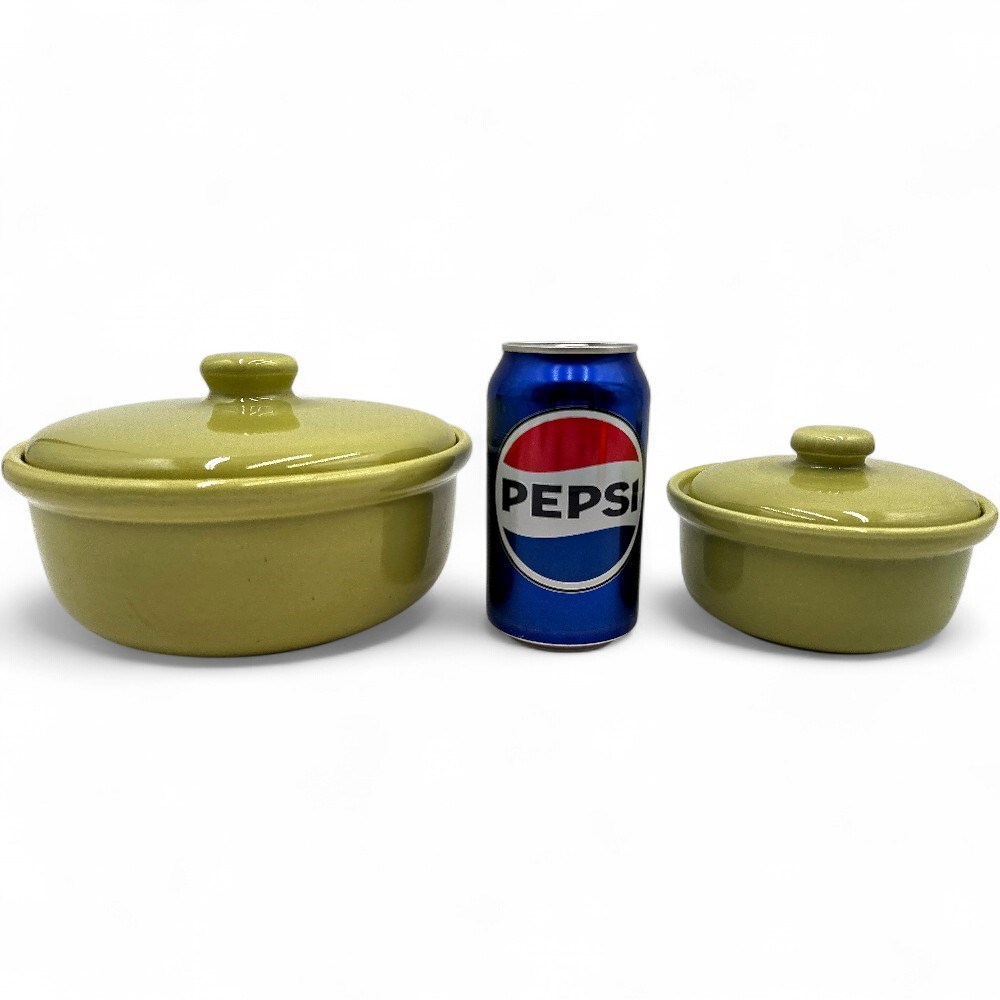 Vintage Bauer Pottery Chartreuse Gloss Lidded Casseroles (Set of 2) View Watchlist >