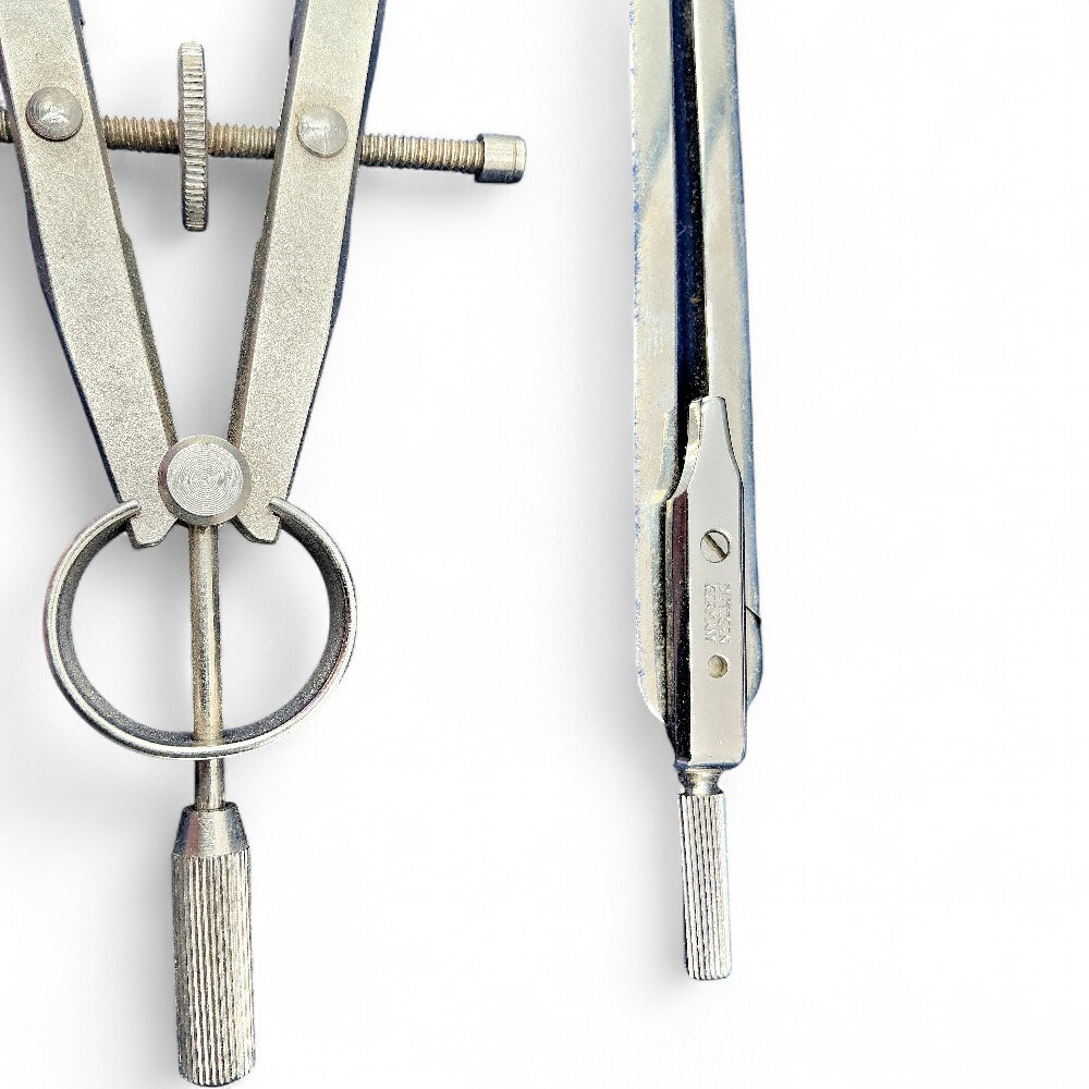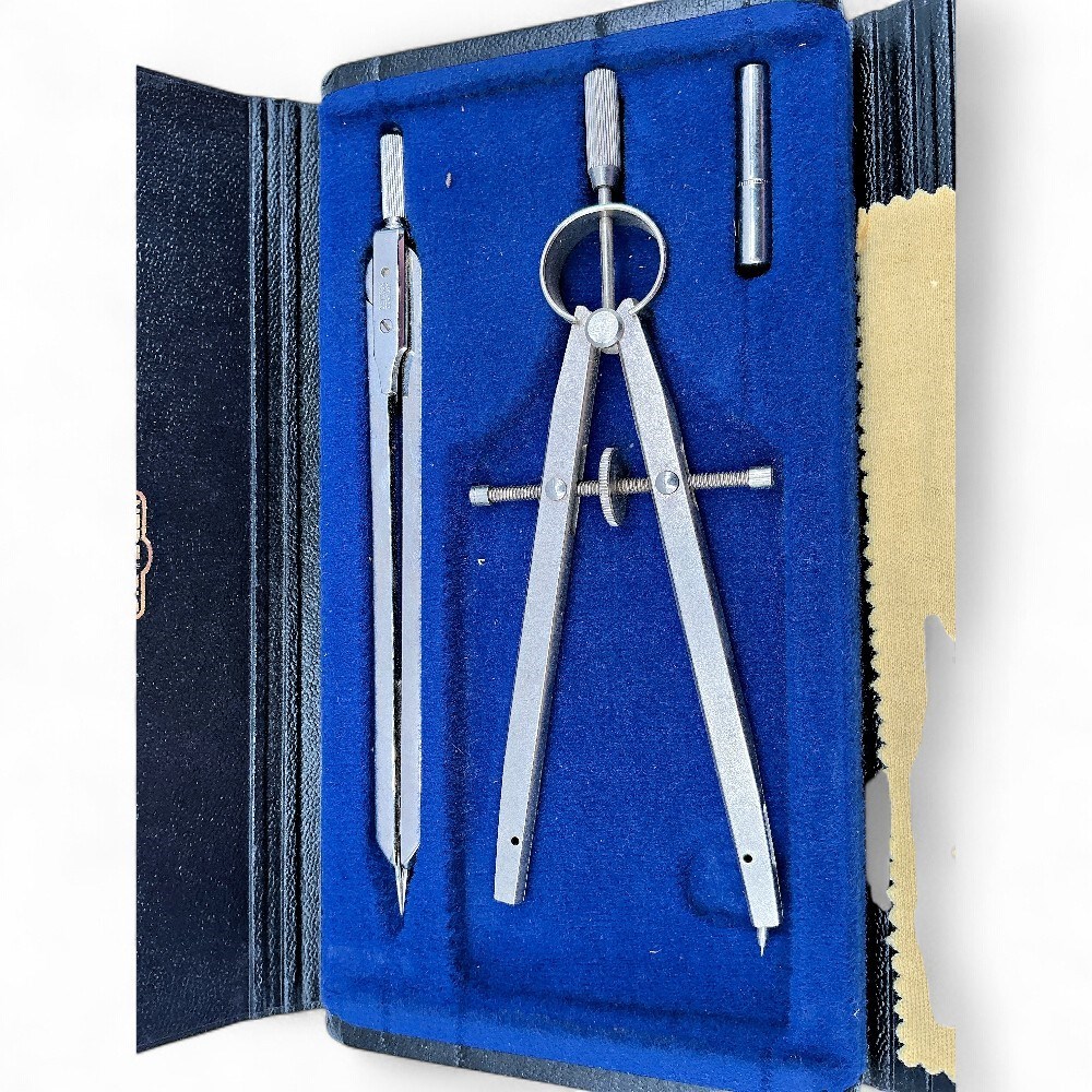 A vintage Dietzgen drafting set. Dietzgen, known for precision and quality engineering tools. Contents: The set includes various drawing instruments, such as the compass and divider shown. Origin: The tools are often associated with German manufacturing, though some sets were made in the United States. Purpose: These sets were used for technical drawing, engineering, surveying, and printmaking.
