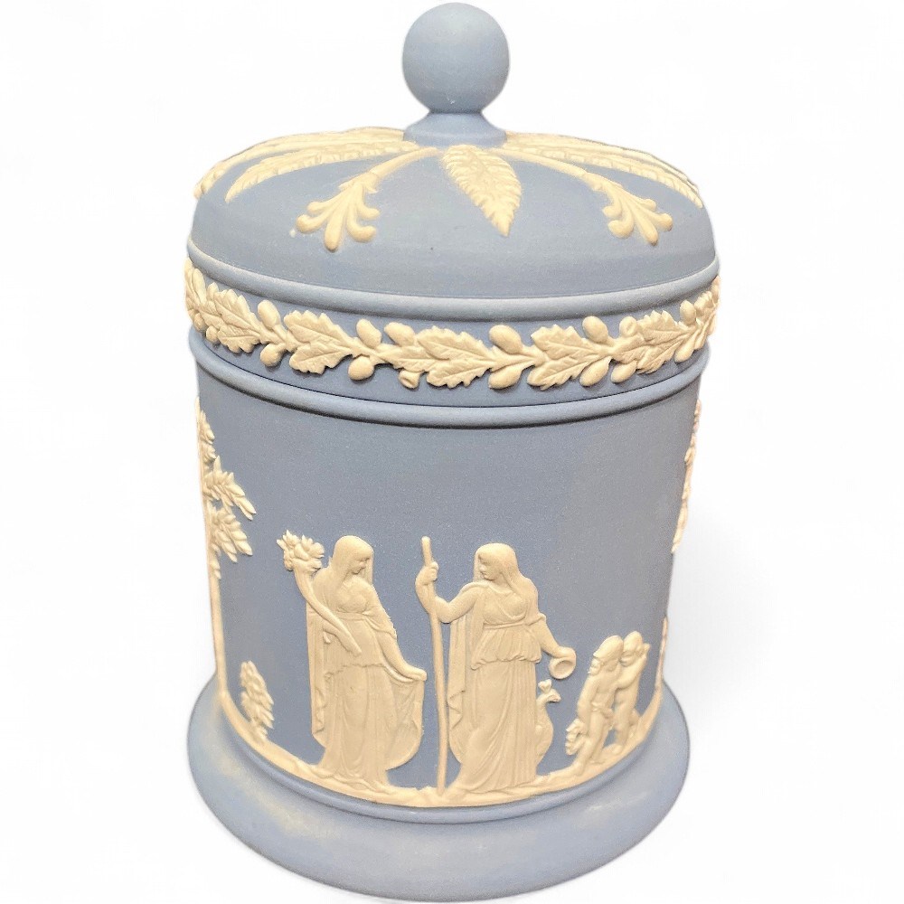 Vintage Wedgwood Blue Jasperware Lidded Tobacco Jar View Watchlist >
