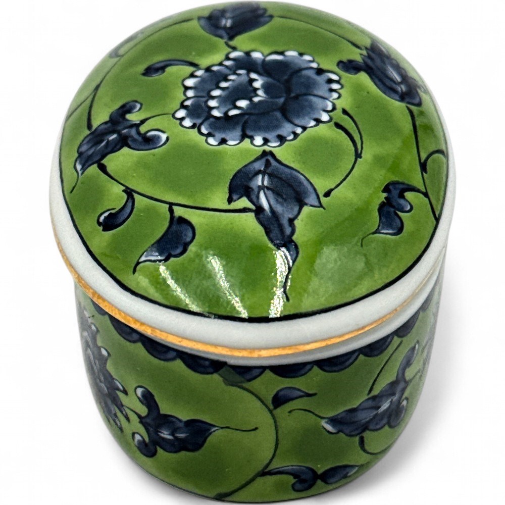 Vintage Otagiri Japan Green & Blue Floral Porcelain Trinket Box View Watchlist >