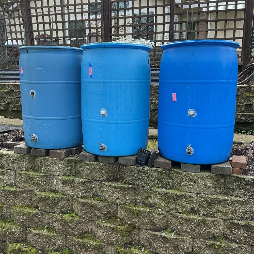 Blue Plastic Rain Barrels 55-Gallon Lot of 3 View Watchlist >