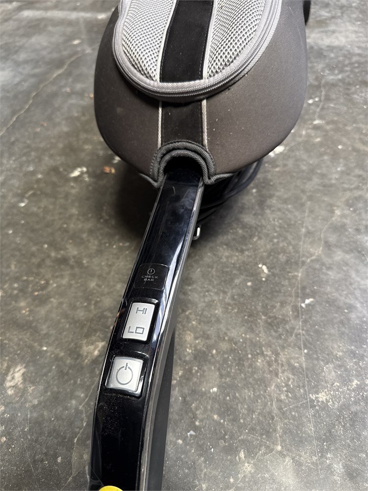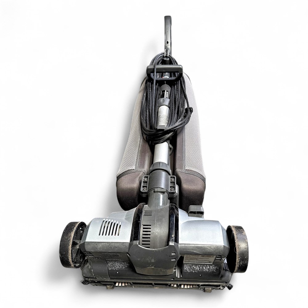 It is a bagged model that uses Type Q HEPA bags. The vacuum weighs 13 pounds and has a 35-foot cord. It has a manual 4-position height adjustment and 2-speed motor. The design is a direct air or "dirty air" system where air passes through the fan before the bag. 45" H x 13.5" W Good condition.