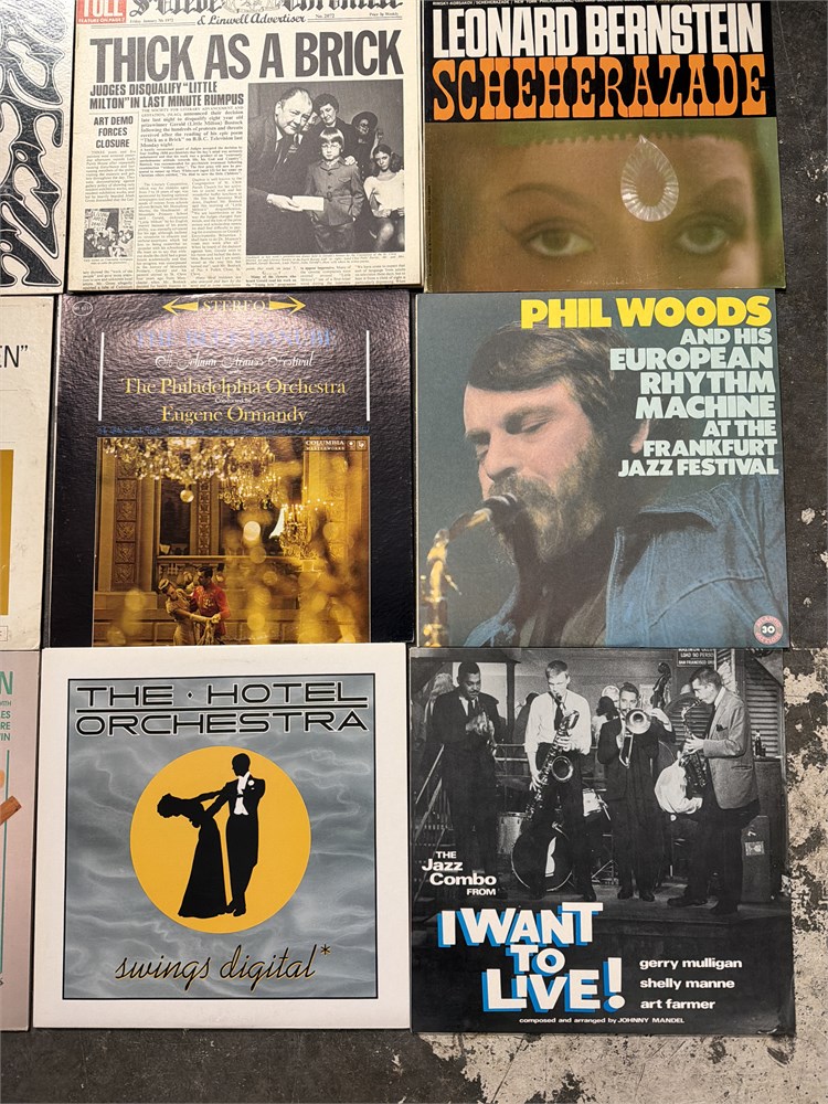 Mixed lot of 16 LPs. Includes Phil Woods, Jethro Tull, Leonard Bernstein, Santana, and others.