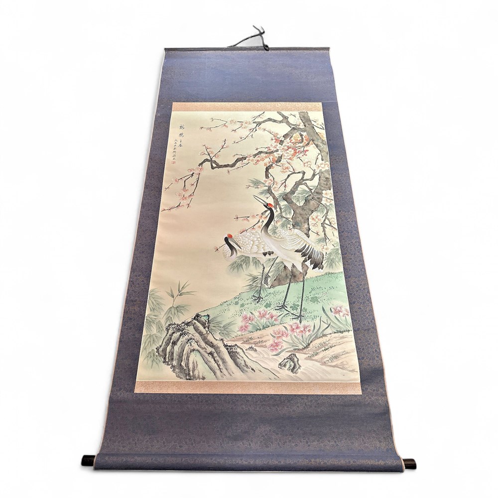 Chinese Scroll Painting Cranes Plum Blossoms Pine View Watchlist >
