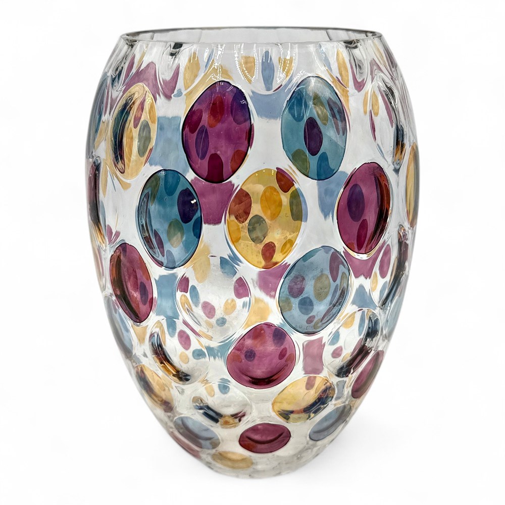 A "Nemo" vase designed by Max Kannegiesser for the Czech glassworks Borske Sklo, produced in the 1950s or 1960s. The vase is a notable example of Mid-Century Modern Bohemian art glass.