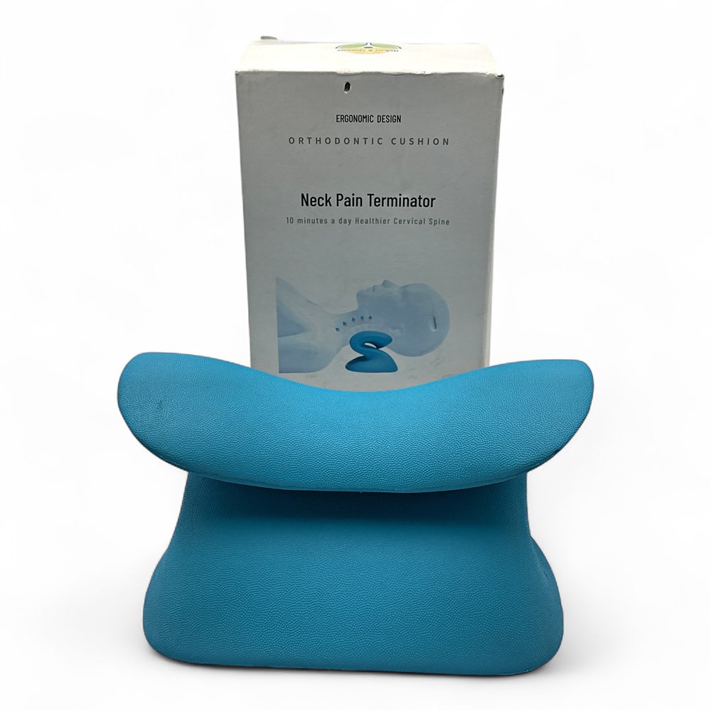A Sunmy Miami cervical traction device, also known as a neck and shoulder relaxer. It is designed to help relieve neck pain and stiffness by gently stretching the cervical spine. Ergonomic design supports the neck's natural curve. Aids in restoring proper cervical spine alignment. Can be used on any hard, flat surface for about 10 minutes per day. A simple, non-invasive physical solution for neck tension and headaches. 7" Dia x 5" H Good condition.