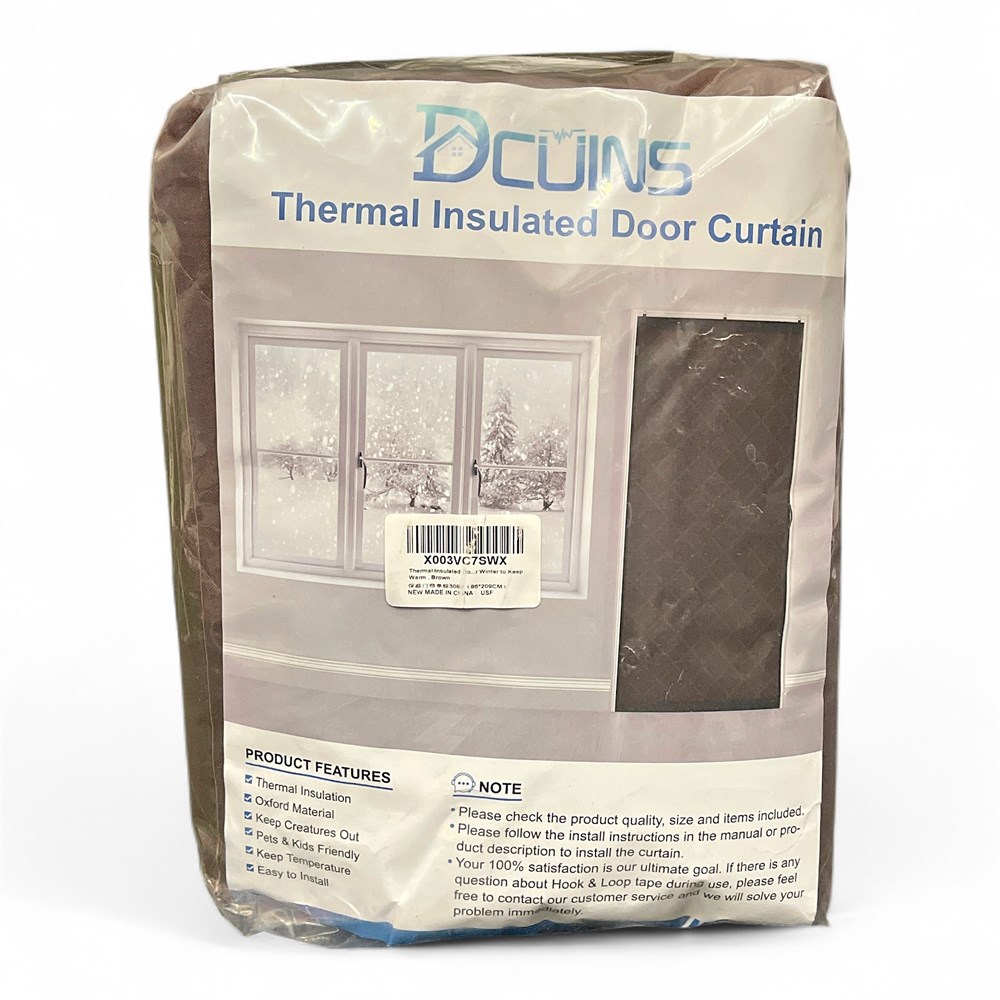 DCUINS thermal insulated door curtain. Includes hook and loop tape for easy installation. New in packaging.
