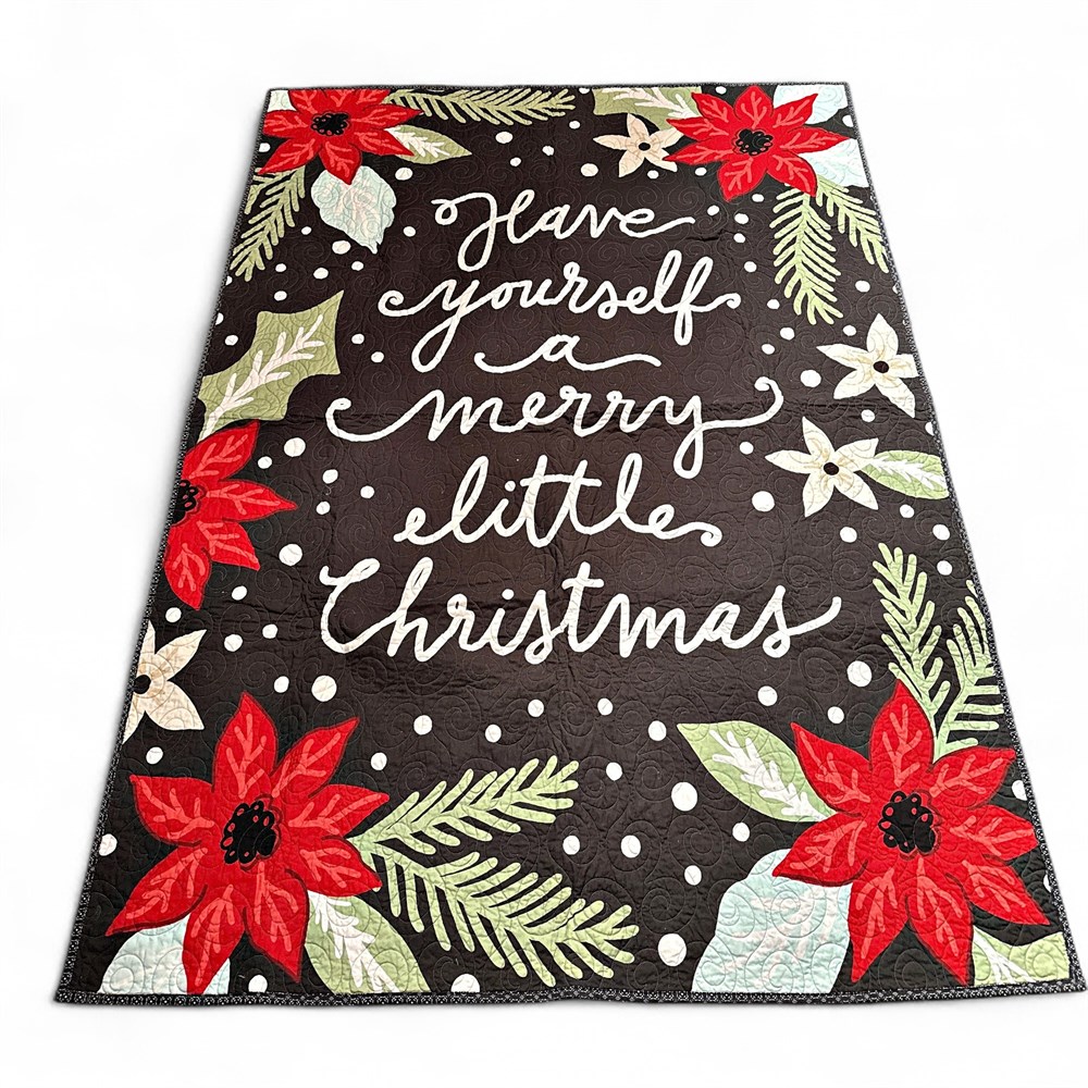 A Christmas quilt made from a quilting panel called Little Christmas Panel by Lella Boutique of Moda. The quilt itself was made by Halli Tucker in 2019. 71" L x 52" W Good condition.