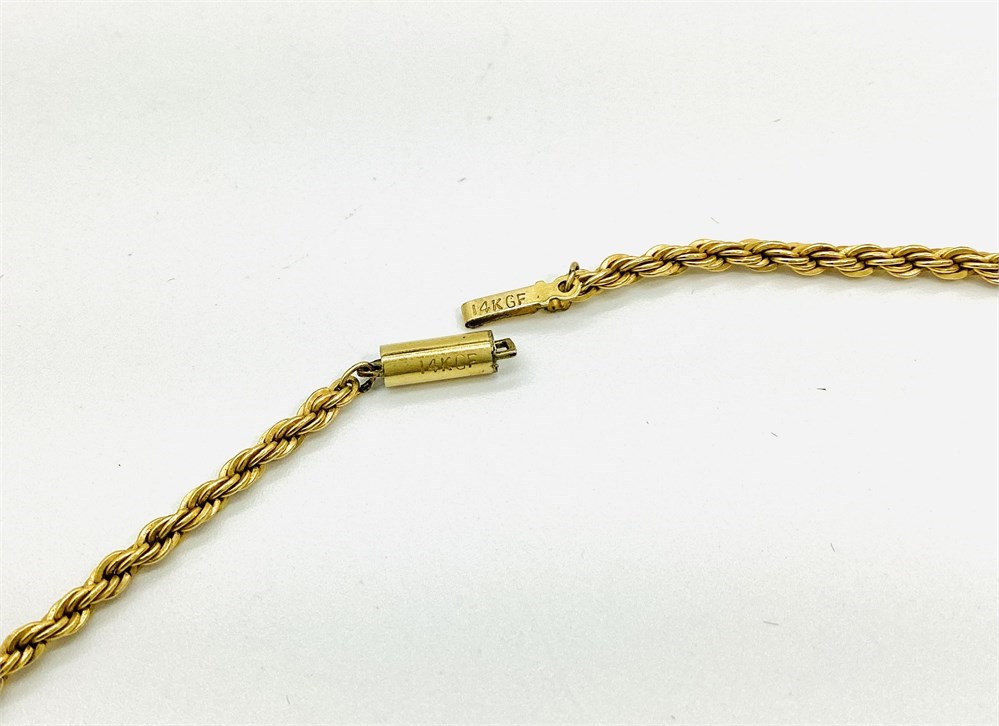 Marked 14K GF. Necklace is approximately 24" long and weighs 9.8 grams.