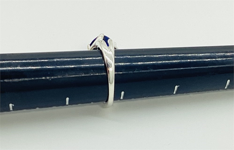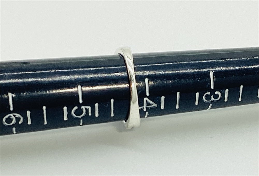 Ring is marked P4SR which indicates the metal is Platina 4, a specific alloy containing four precious metals: Platinum, Palladium, Silver, and Rhodium. The P4SR mark is a trademark used by a company called Star Ring, Inc. of California, which is no longer in business. Ring is about a size 4.5. A jeweler would be able to resize this to fit your specific needs. Ring weighs 2.6 grams.