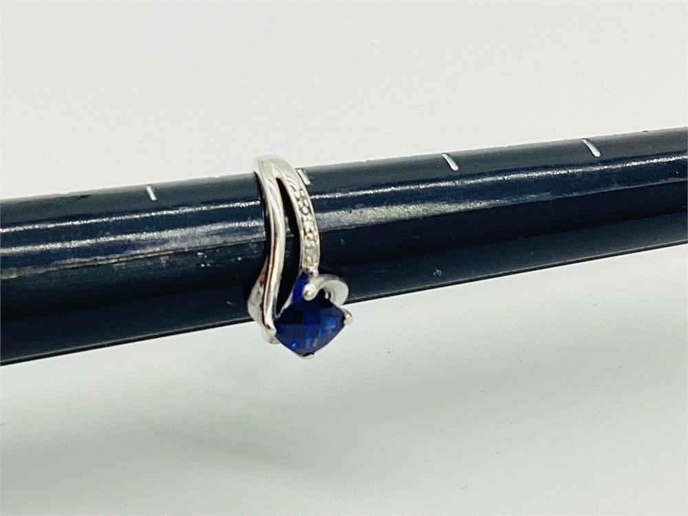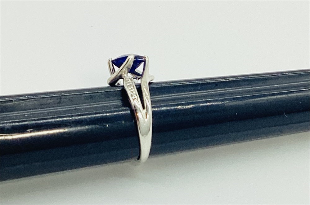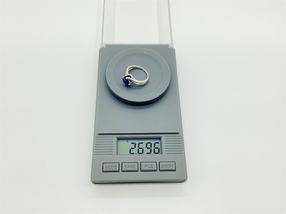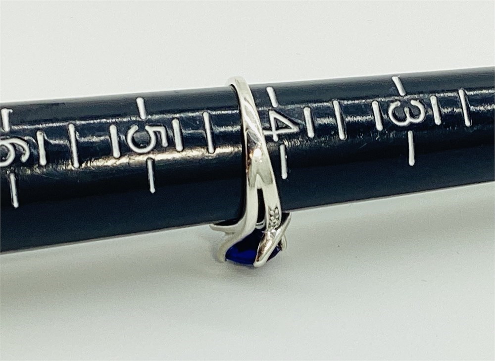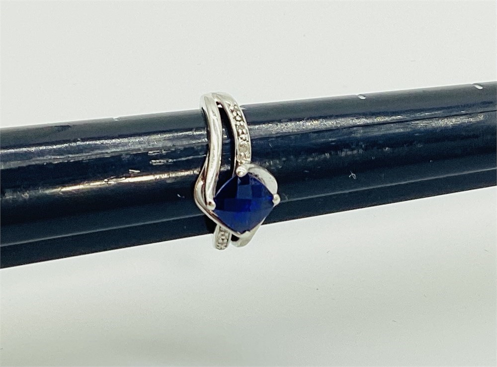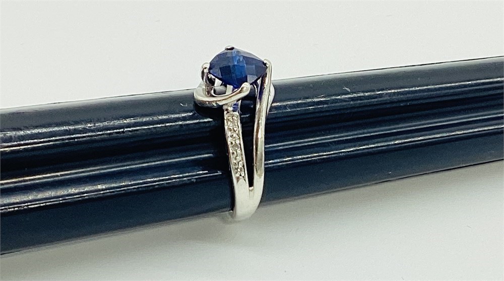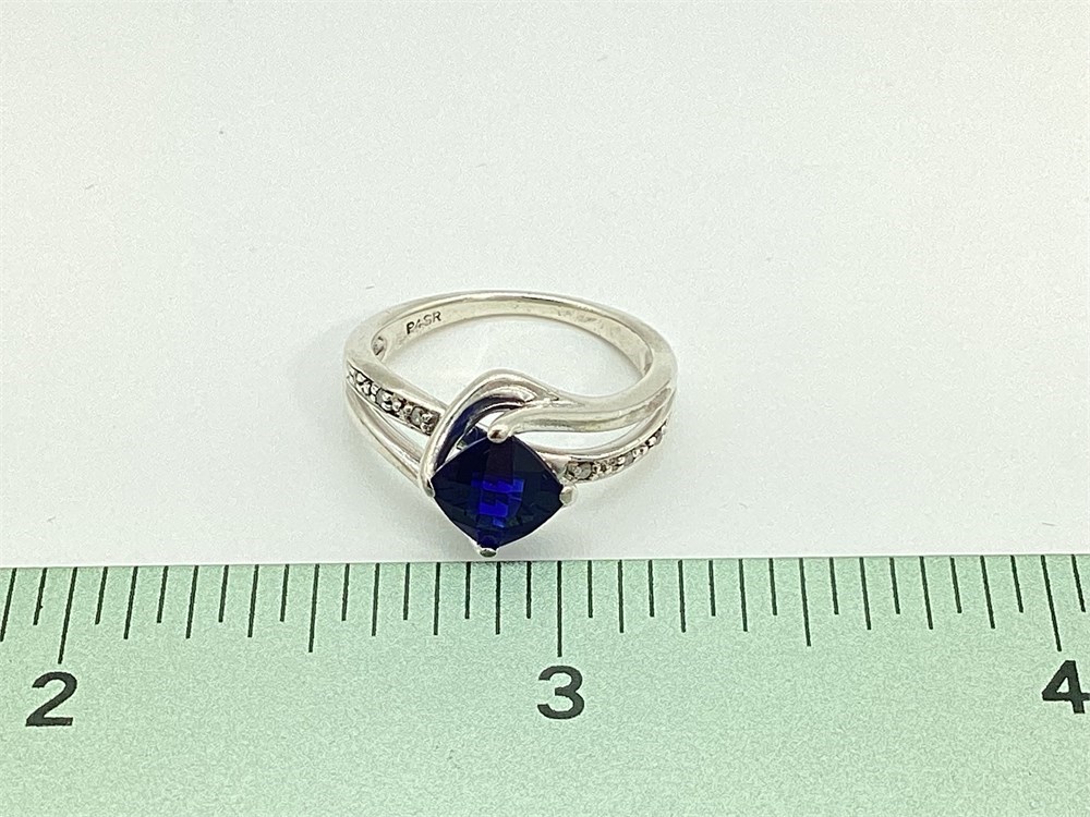 Square Facet Cut Blue Topaz and Diamond Ring-Precious Metal Alloy Ring View Watchlist >