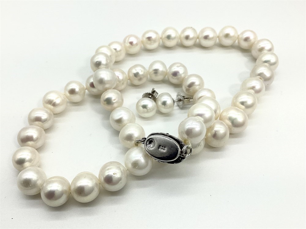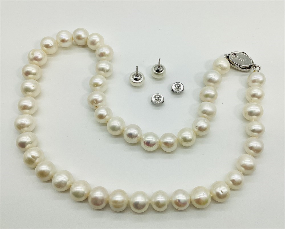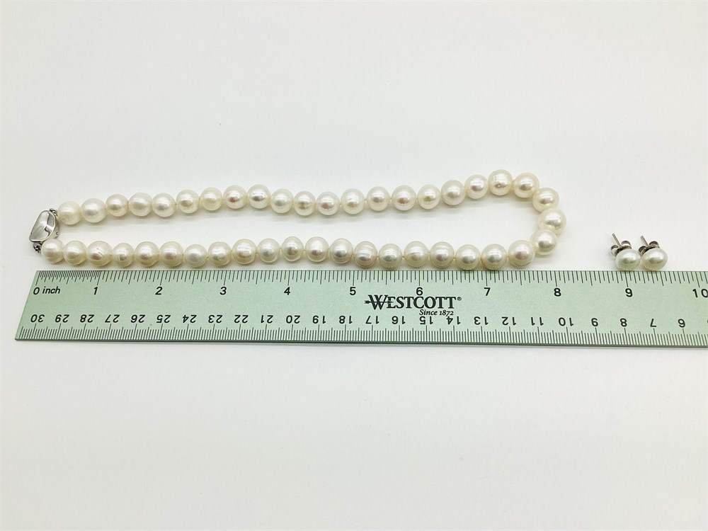 Sterling Silver Cultured Pearl Necklace and Honora Earrings View Watchlist >