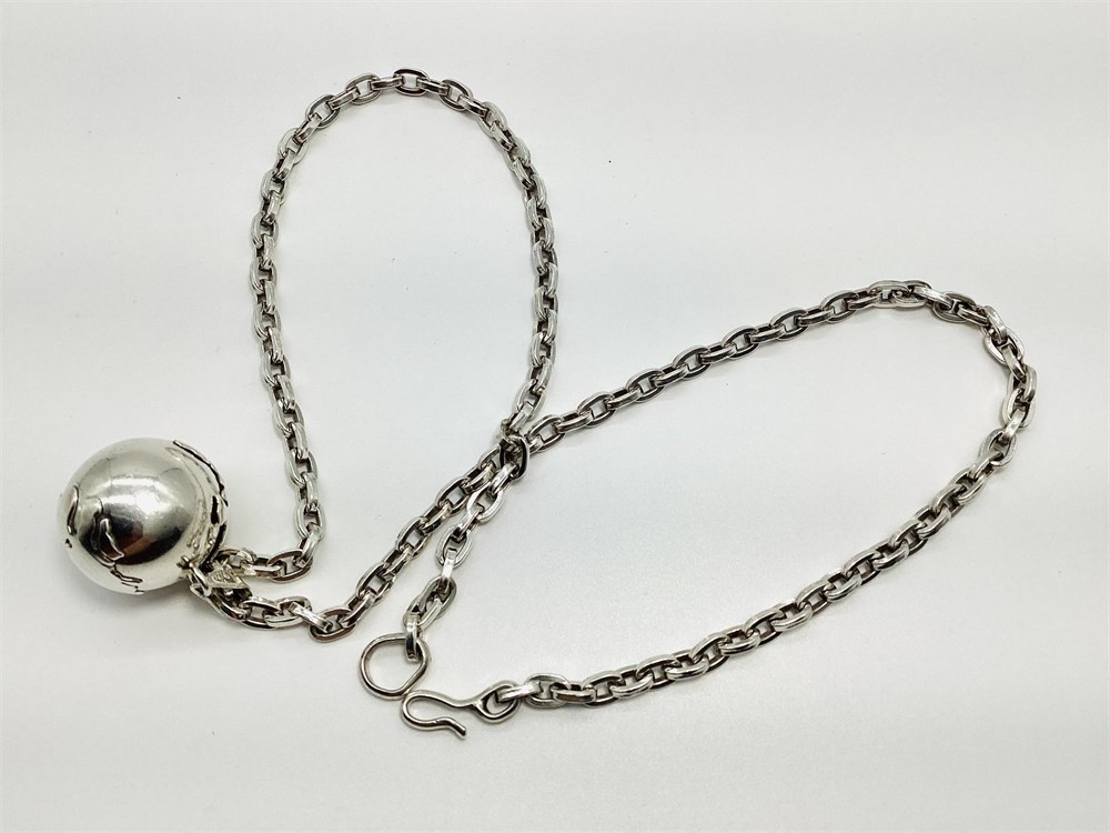 Vintage Sterling Silver World Chime Ball Pendant and Heavy Link Chain View Watchlist >