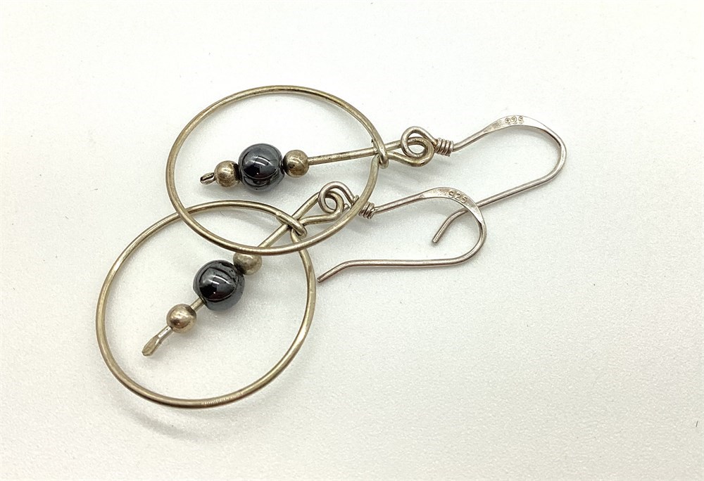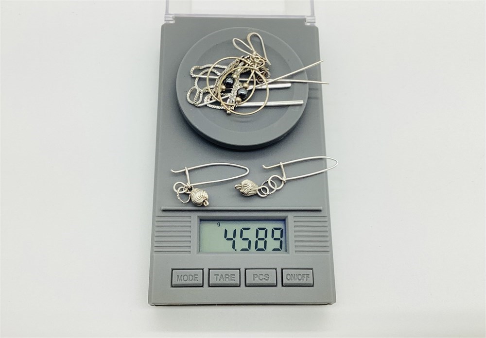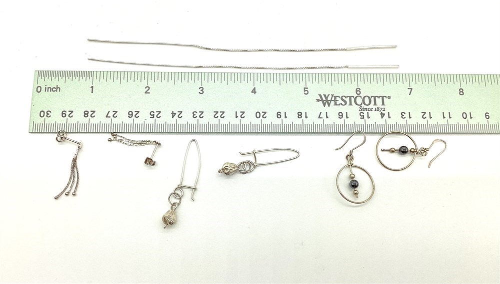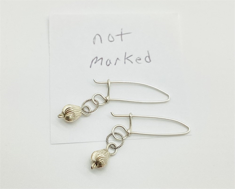 Three of the four pairs of earrings are marked. The unmarked pair has been excluded from total weight. The unmarked pair does test as silver. Weight for the three marked pairs is 4.5 grams.