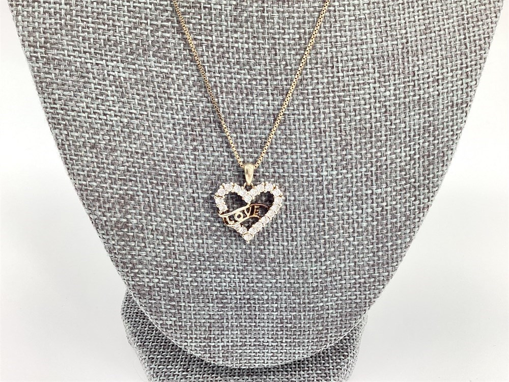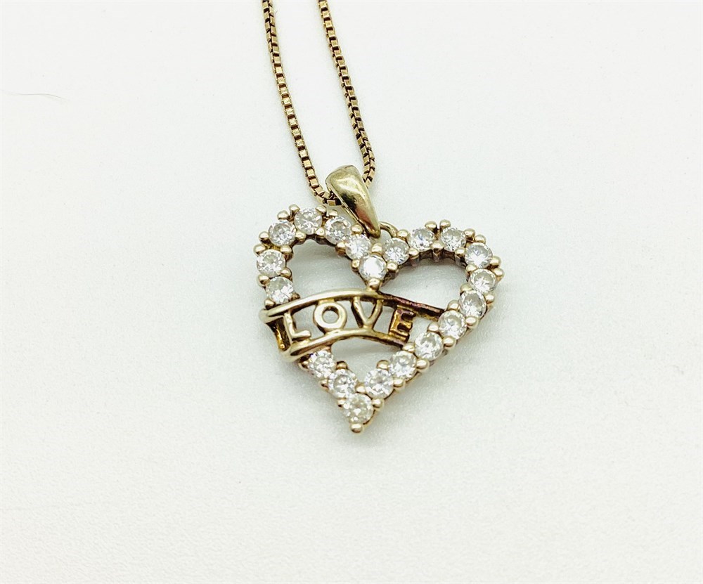 Gold Plate Over Sterling Silver CZ Heart "Love" Pendant with Box Chain View Watchlist >