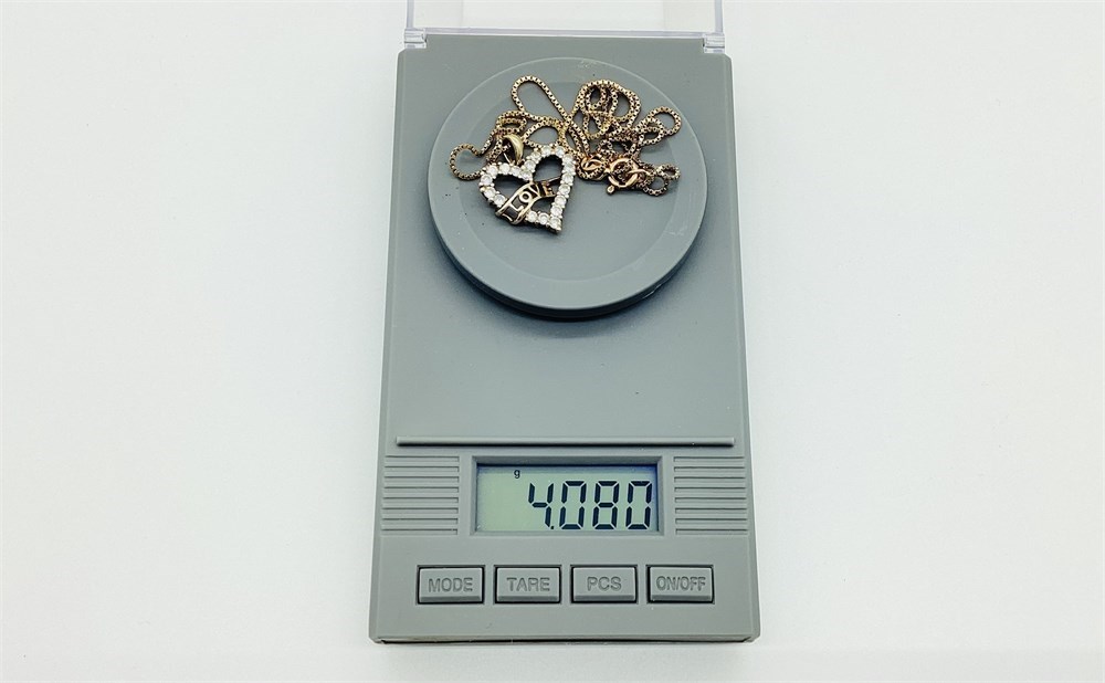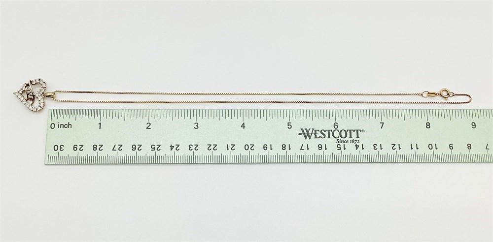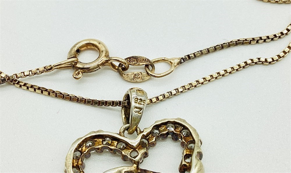 Stones around the heart are cubic zirconia (CZ). Markings are 925 CZ Italy. Combined weight of the chain and pendant is 4.0 grams. Chain measures approximately 18" long.