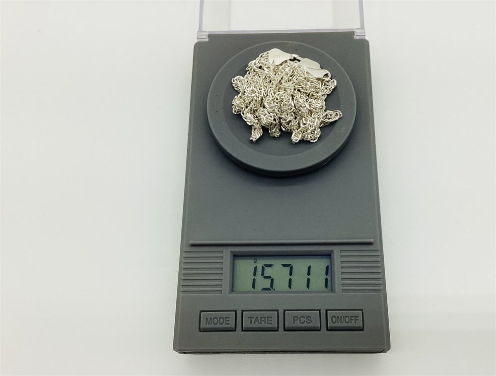 Necklace is about 18-1/4" long and weighs 15.7 grams.