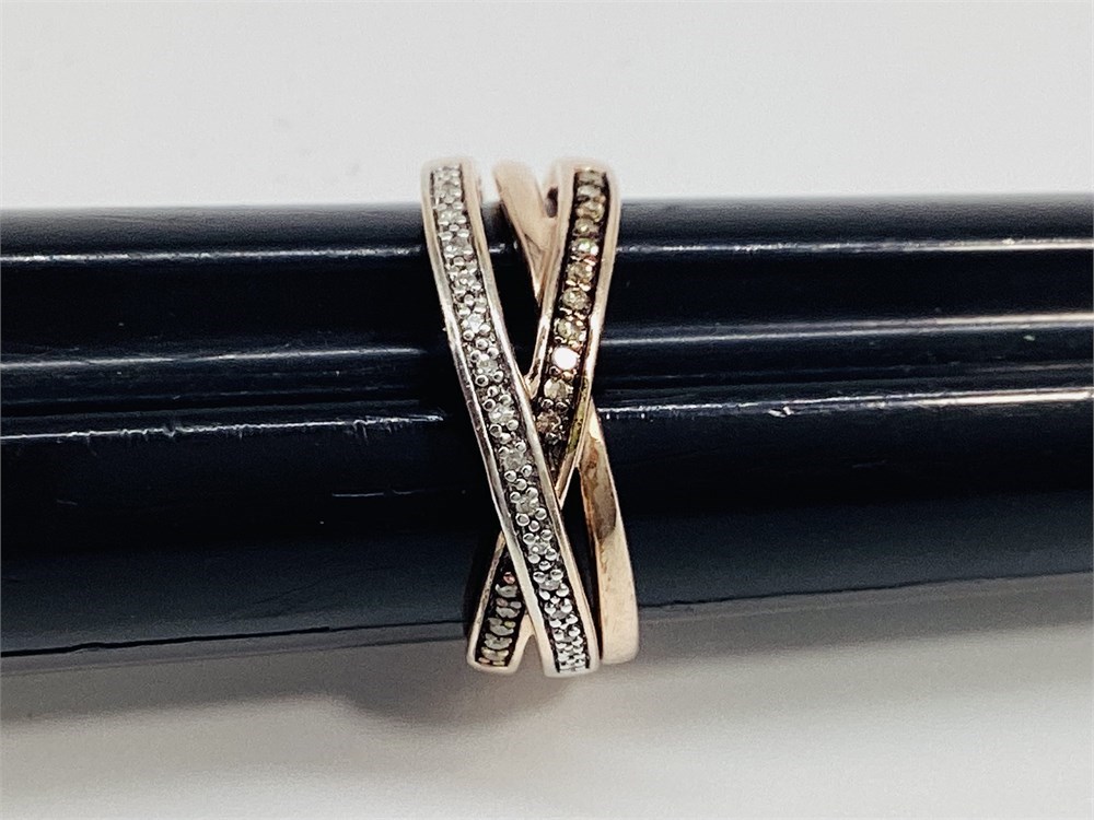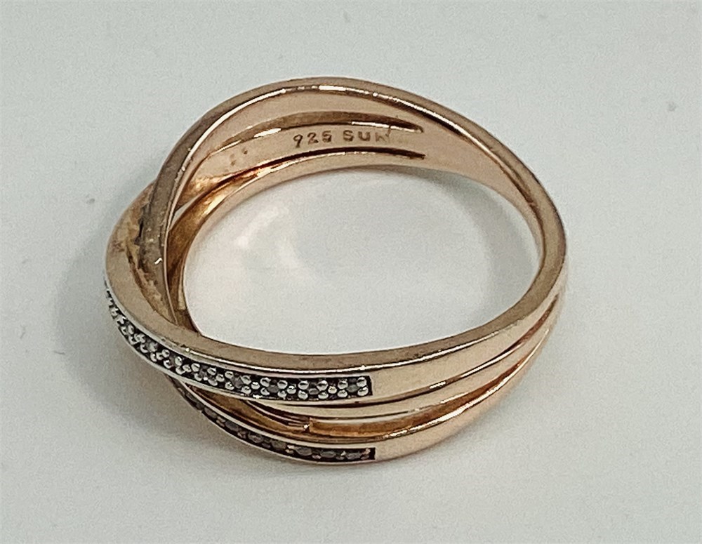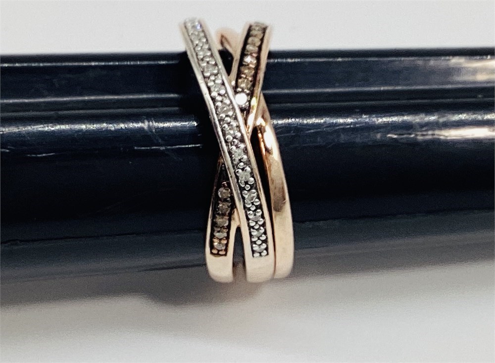Sterling Silver Crossover Pave Diamond/Moissanite Triple Band Ring View Watchlist >
