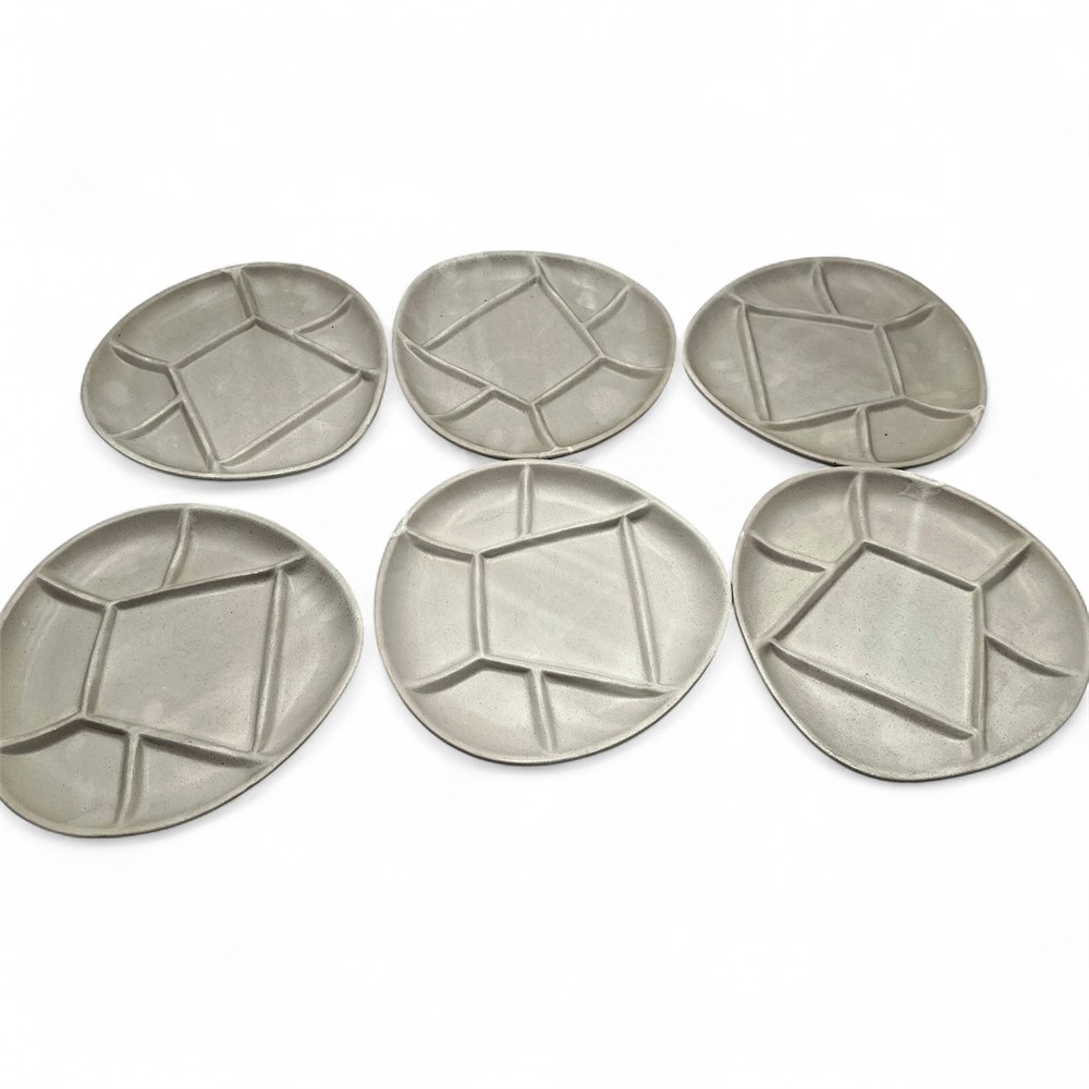 Set of 6 Vintage USA Marked Ceramic DividedFondue Plates View Watchlist >