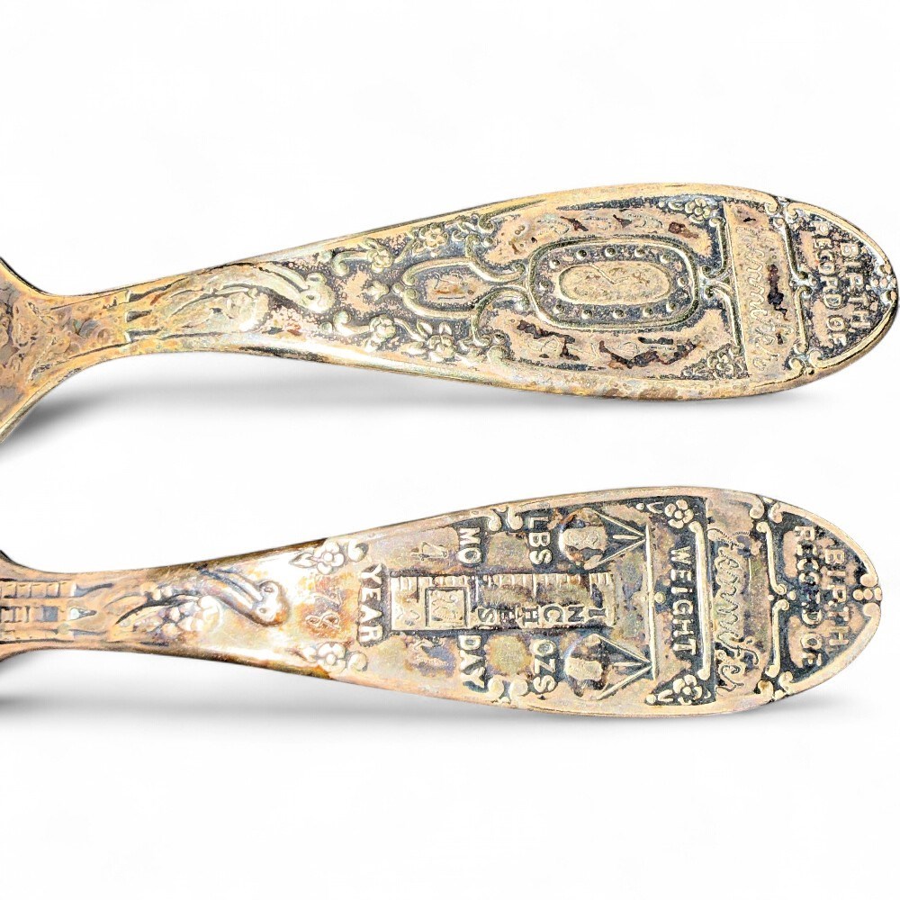 Community & Mixed Silverplate Birth Record Spoons w/ Display View Watchlist >