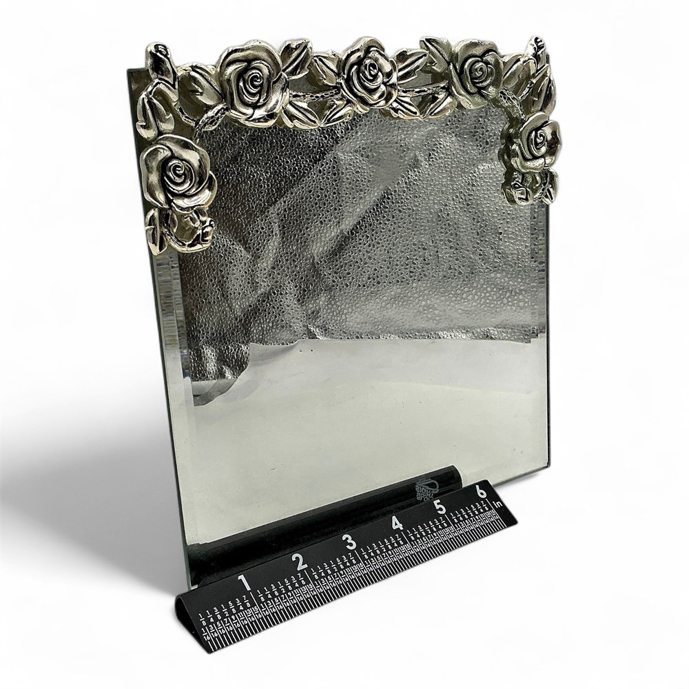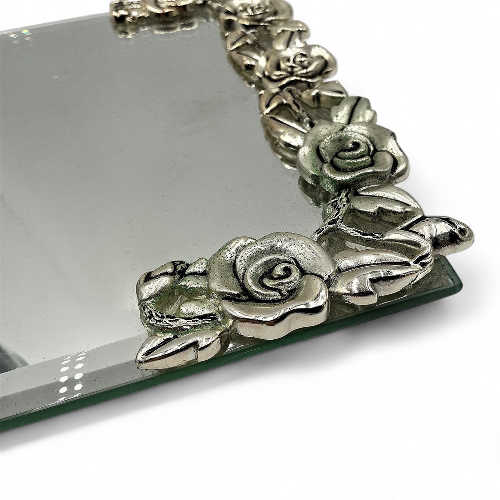 Metal And Glass Tabletop Vanity Mirror With Rose Motif View Watchlist >
