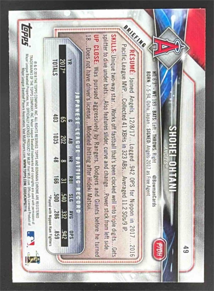 2018 Bowman Shohei Ohtani #49 Rookie Angels