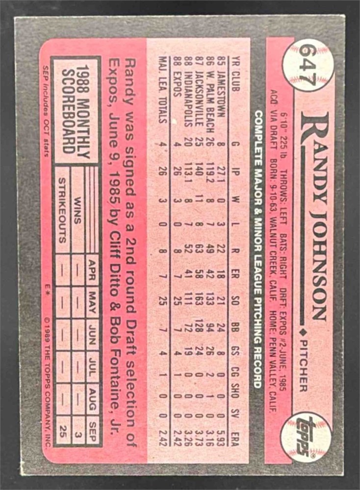 1989 Topps Randy Johnson #647 Rookie Expos