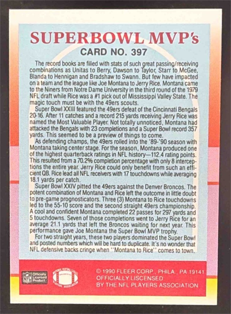 1990 Fleer #1 Joe Montana/Jerry Rice All Pro 49ers