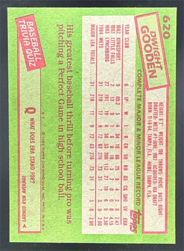 1985 Topps Dwight Gooden #620 Rookie Mets