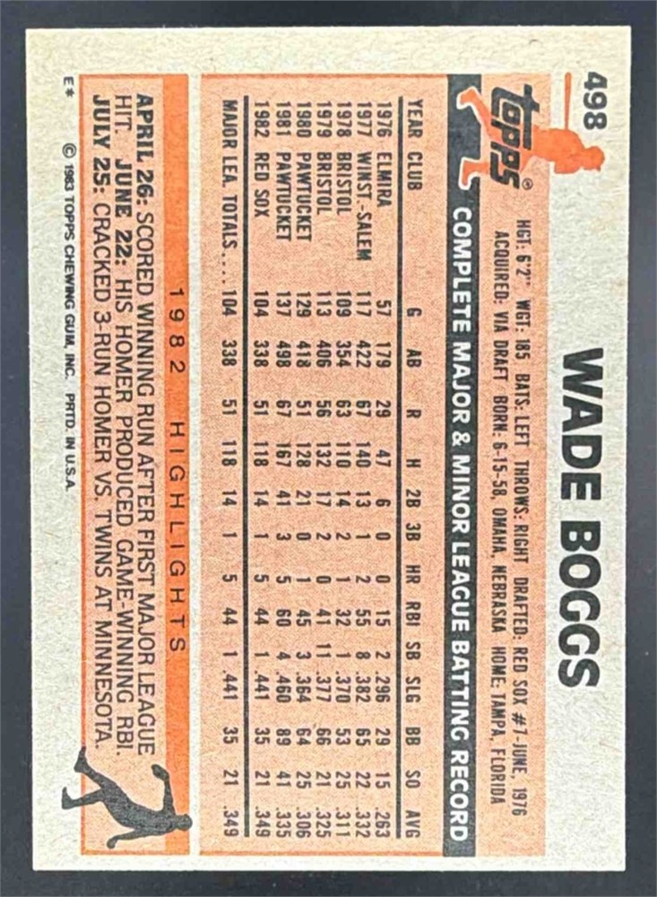 1983 Topps Wade Boggs #498 Rookie Red Sox