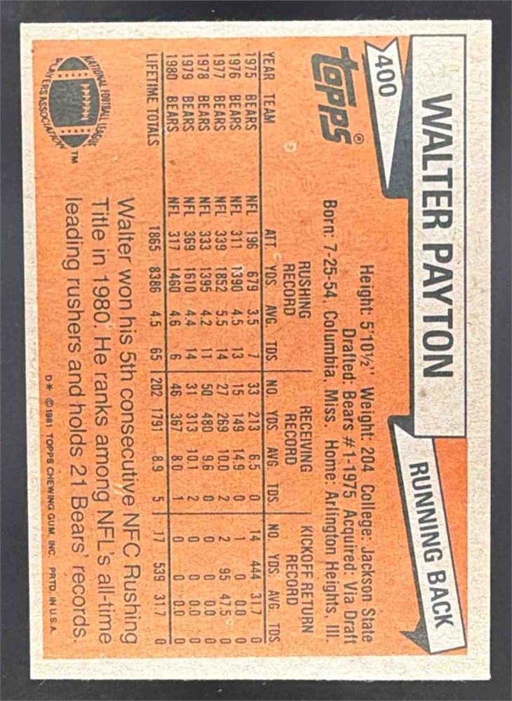 1981 Topps Walter Payton #400 Bears