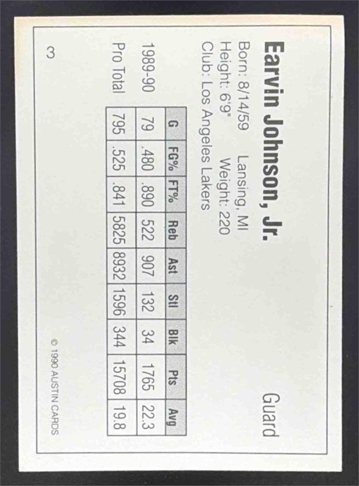 1990 Austin Cards Sample Promo Magic Johnson Rare Lakers