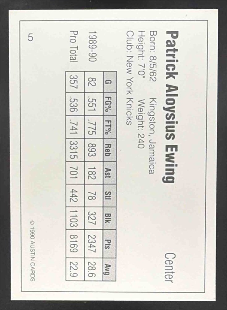 1990 Austin Cards NBA Patrick Ewing Promo Sample Card Rare