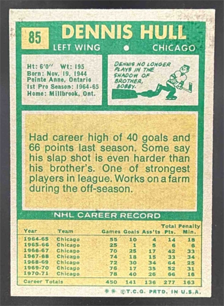 1971-72 Topps Dennis Hull #85 Blackhawks HOF