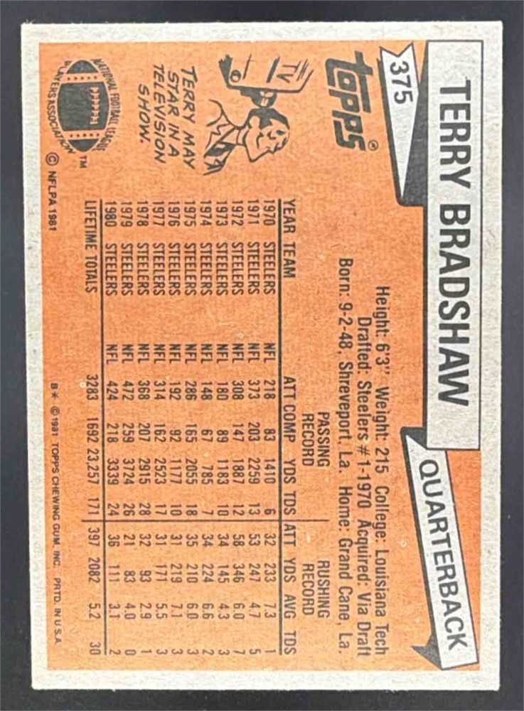 1981 Topps Terry Bradshaw #375 Steelers
