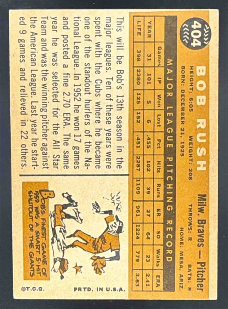 1960 Topps Bob Rush #404