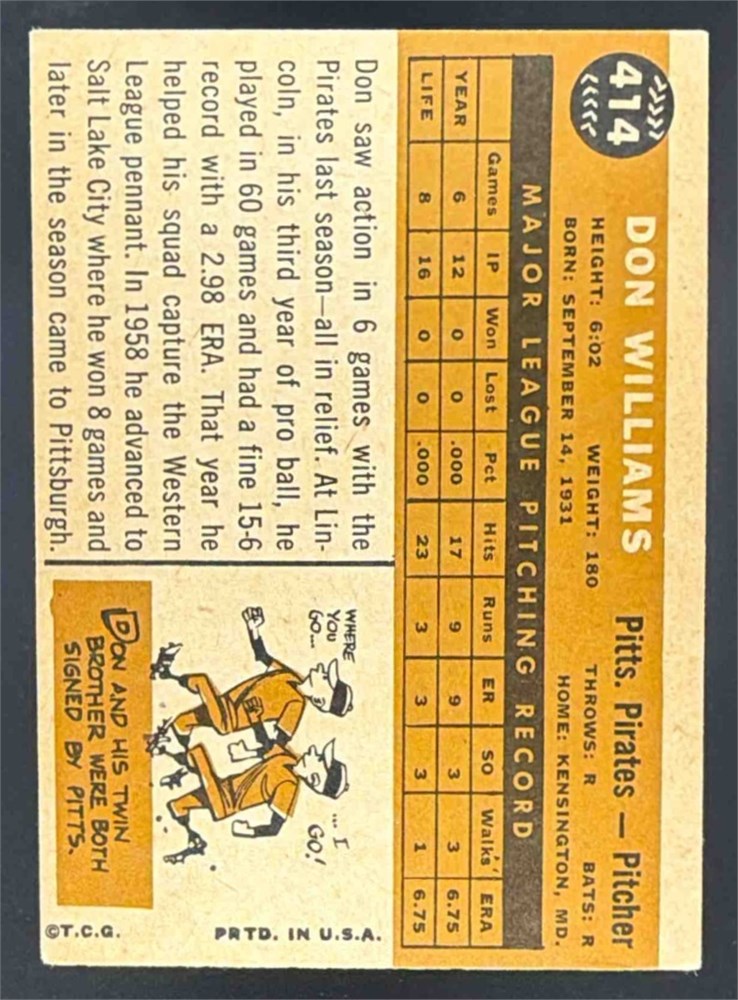1960 Topps #414 Don Williams Nice View Watchlist >