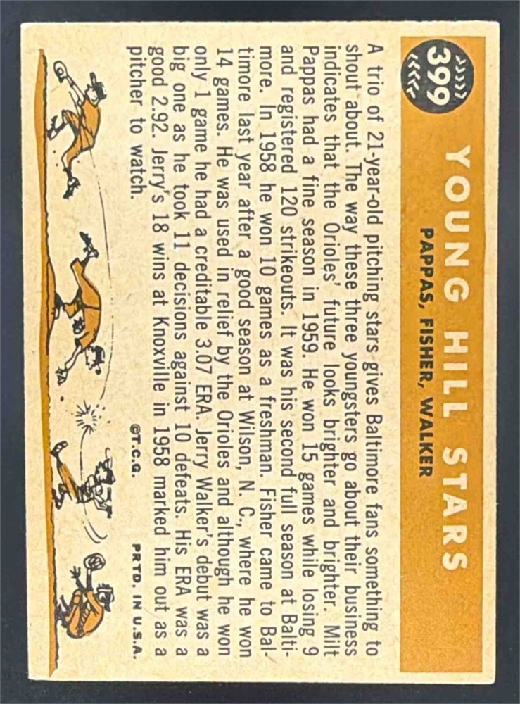 1960 Topps Young Hill Stars Milt Pappas Jack Fisher Jerry Walker CPC #399b VAR View Watchlist >