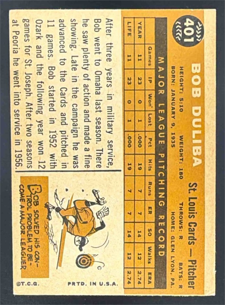 1960 Topps #401 Bob Duliba