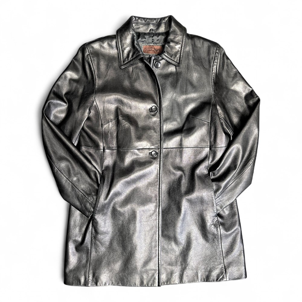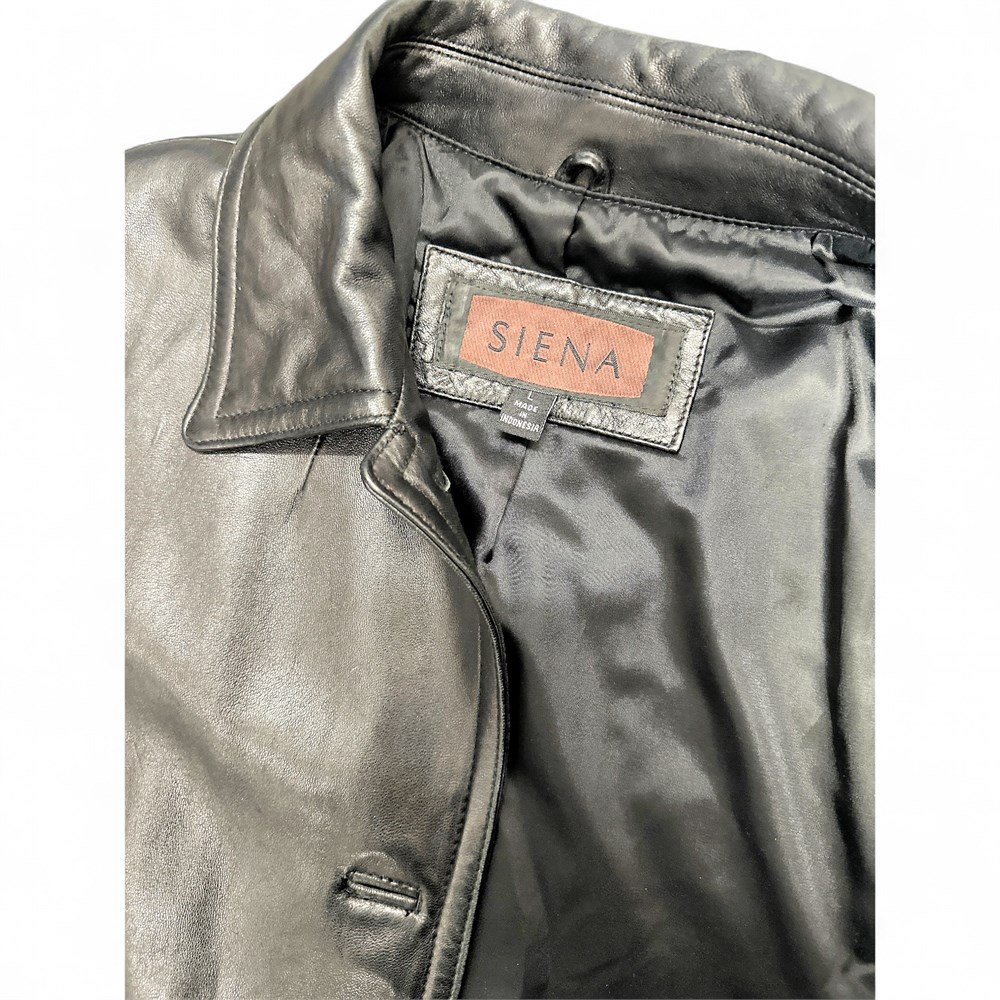 A women's three-button leather jacket/coat from the brand Siena Studio. Lined with Thinsulate. Size Large. Good condition.
