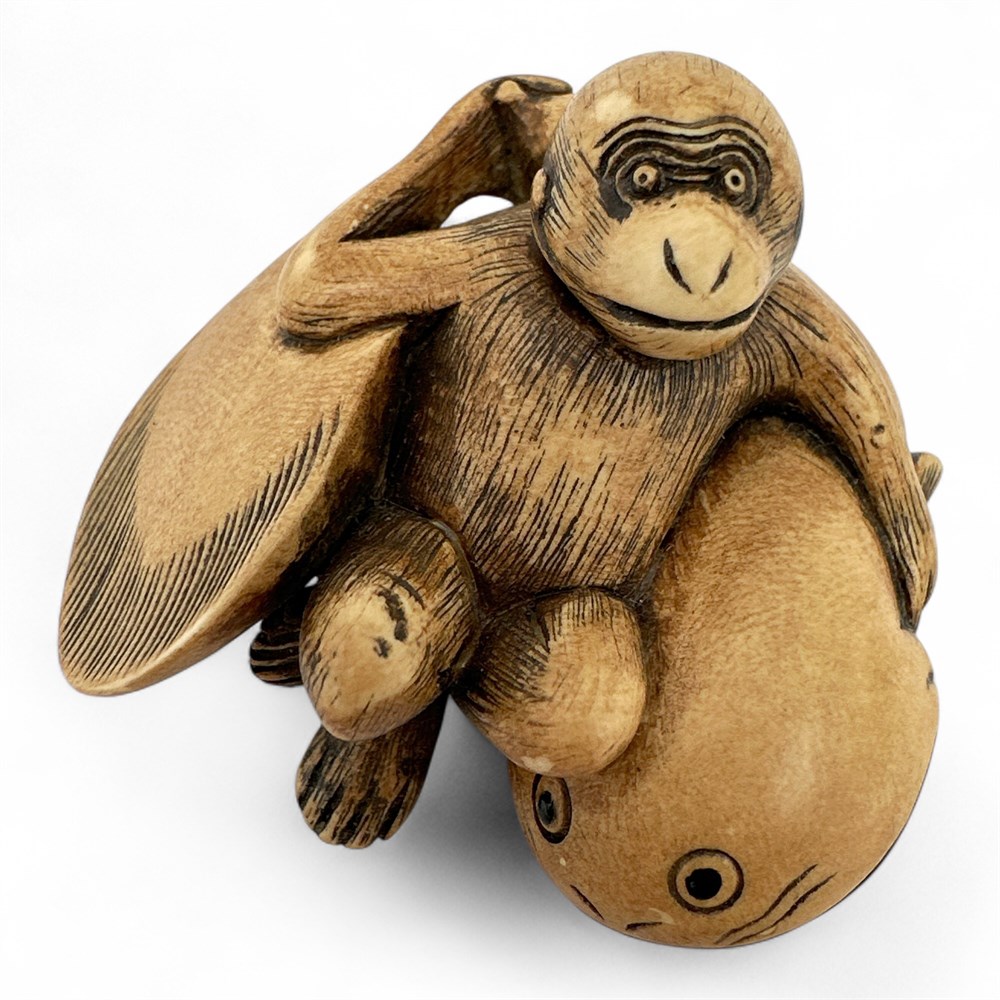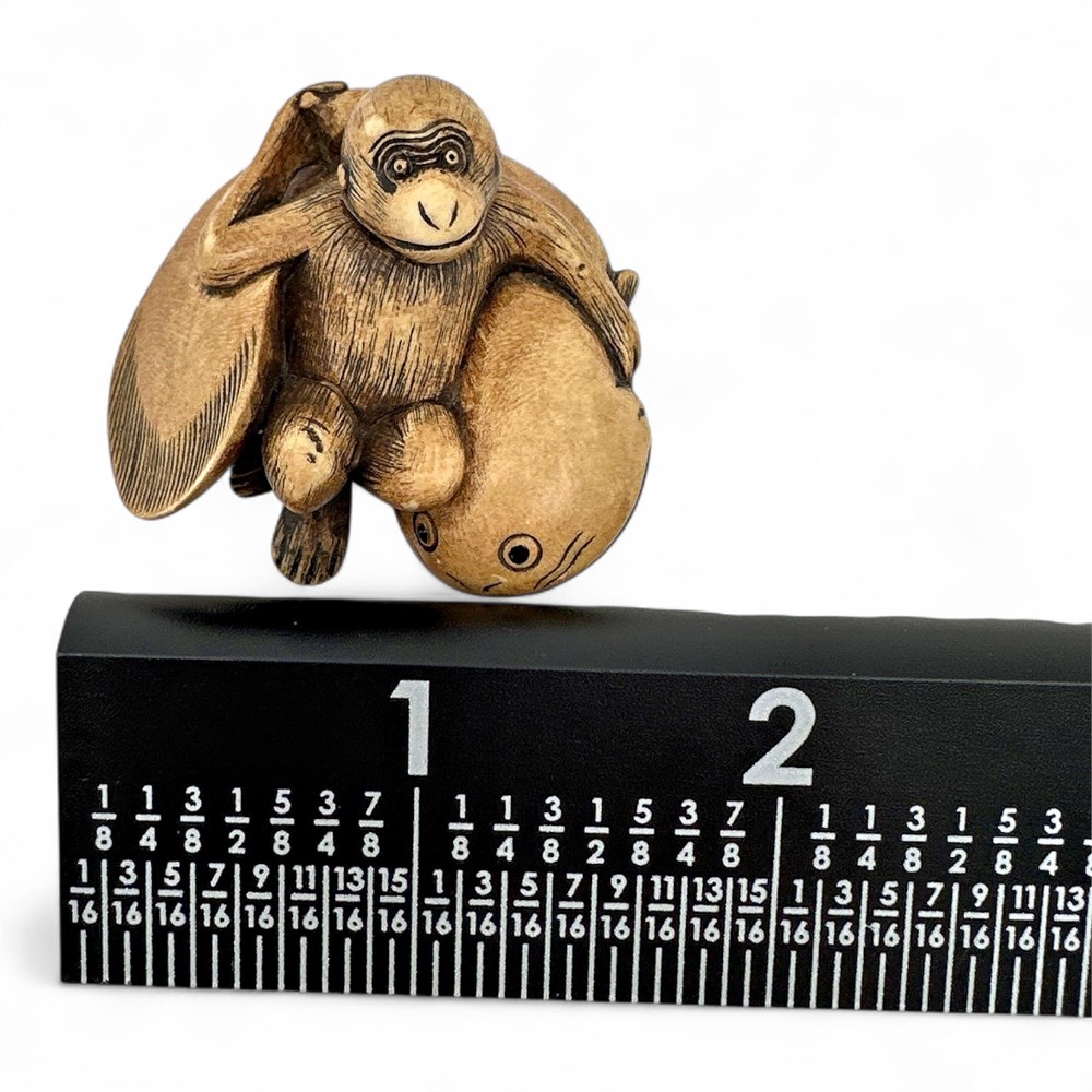 Japanese Netsuke Carving Of Monkey Resting On Namazu View Watchlist >