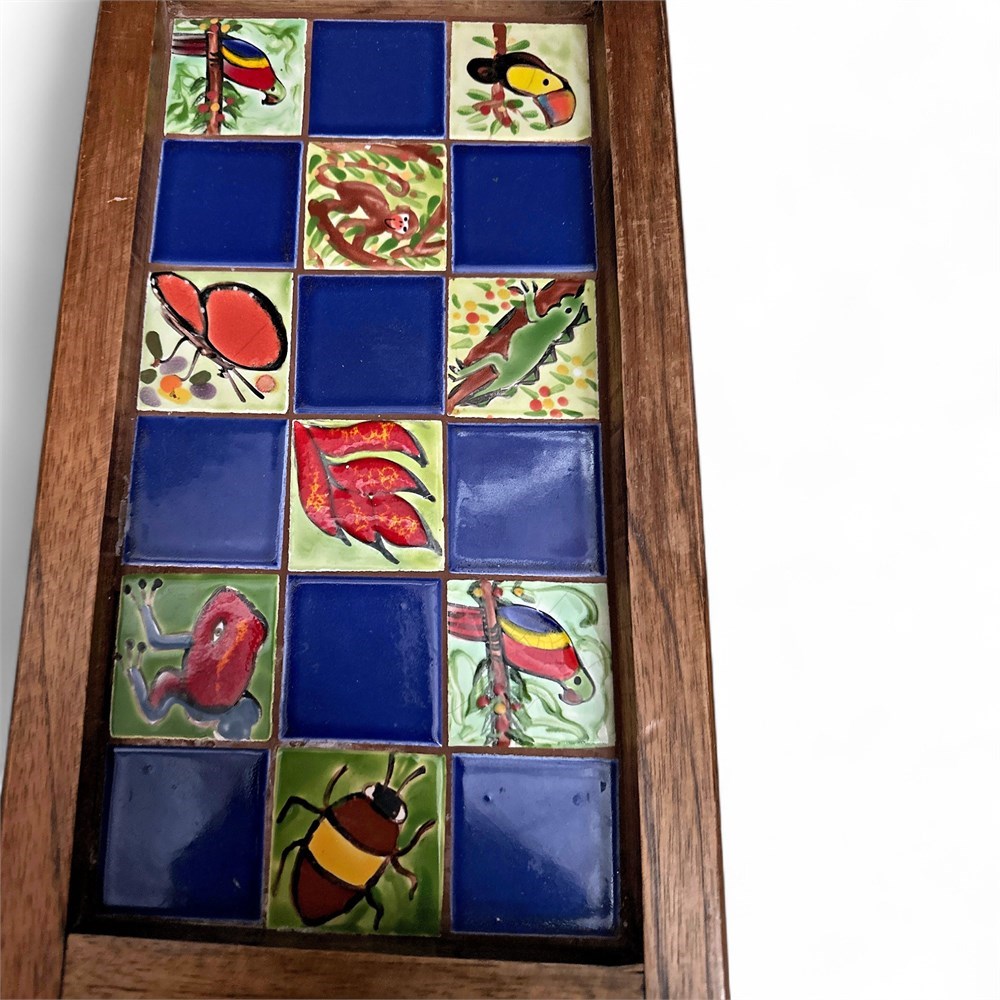 Wooden Serving Tray w/ Hand-Painted Ceramic Animal Tiles View Watchlist >