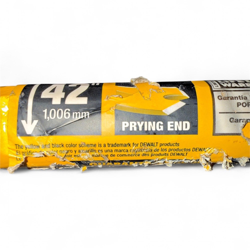 This DeWalt 42-inch wrecking bar is a professional-grade demolition and prying tool constructed from forged high-carbon steel and finished with a durable yellow powder coating for corrosion resistance and long-lasting performance.The tool features dual functional ends, including a rounded 90-degree prying end for powerful leverage and lifting applications, and a pointed beveled end that allows easy penetration into tight spaces for efficient nail removal, digging, and material separation. Measures 42" long and is presented in good condition.