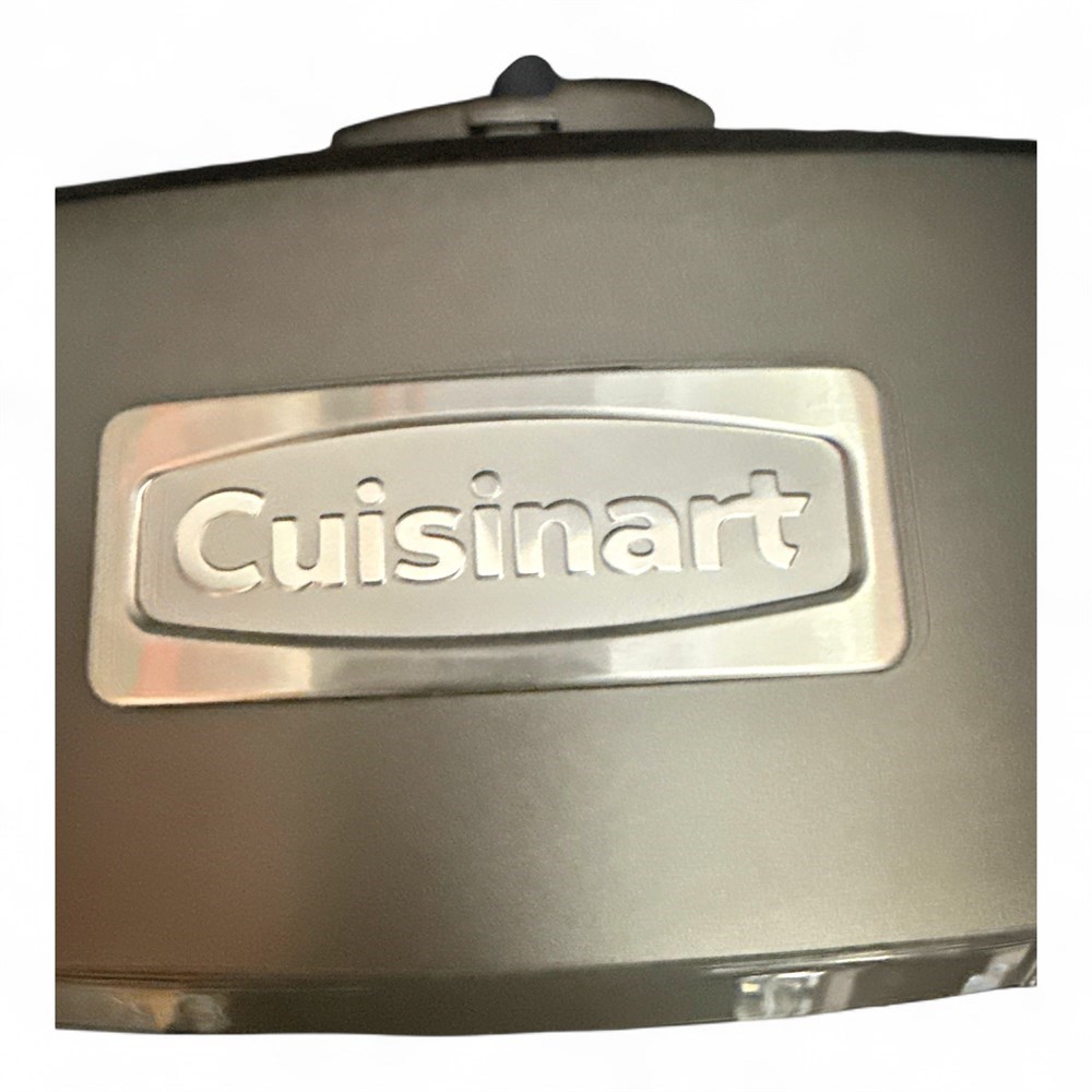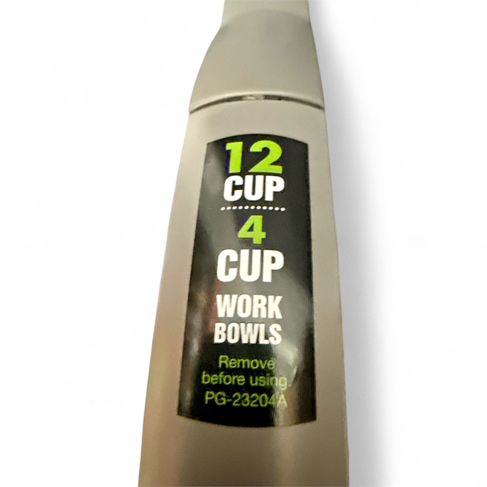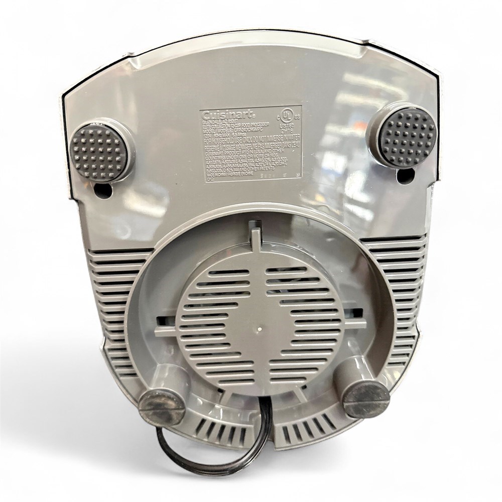 This Cuisinart 12-cup die-cast food processor (model CFP-24DCNGMPC) from the Elite Collection 2.0 line is a versatile countertop kitchen appliance designed for a wide range of food preparation tasks. It features a peak 1000-watt induction motor housed in a sturdy die-cast base for enhanced stability and durability. The processor includes a large 12-cup BPA-free work bowl along with a smaller 4-cup nested work bowl, allowing efficient handling of both large and small quantities. Digital touchpad controls provide simple on, off, and pulse operation, while the SealTight Advantage System ensures maximum bowl capacity with clean processing and pouring. Designed for multifunction use, it is capable of chopping, pureeing, emulsifying, mixing, kneading, shredding, slicing, and more, and incorporates a safety locking system for secure operation. The unit comes with multiple accessories, including large and small chopping/mixing blades, a dough blade, an adjustable slicing disc, a reversible shredding disc, and additional processing components. Measures approximately 16 1/2 inches high and remains in good condition.