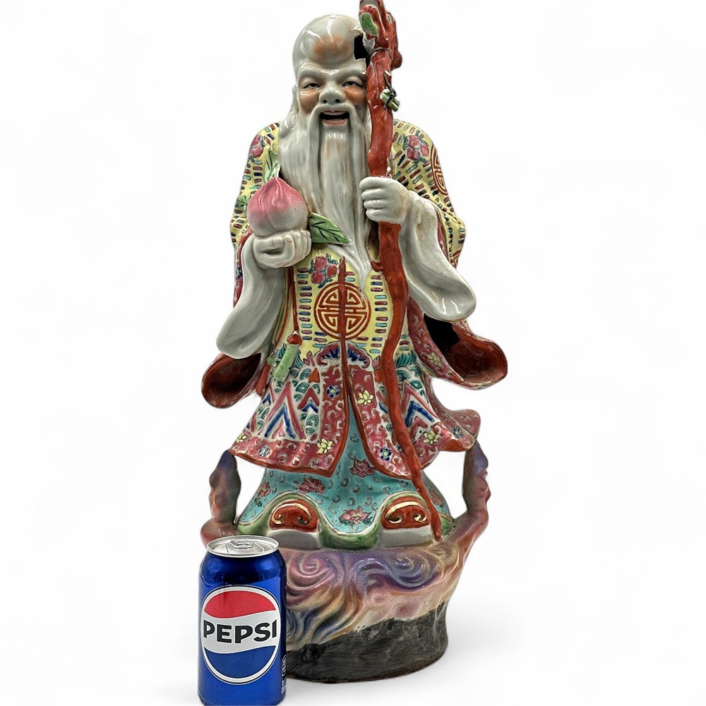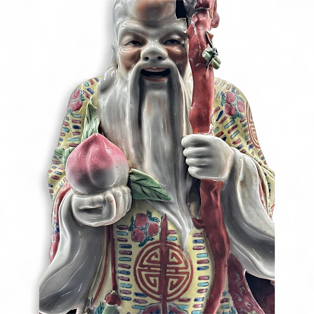 Large Chinese Famille Rose Porcelain Figure of Shou Xing View Watchlist >