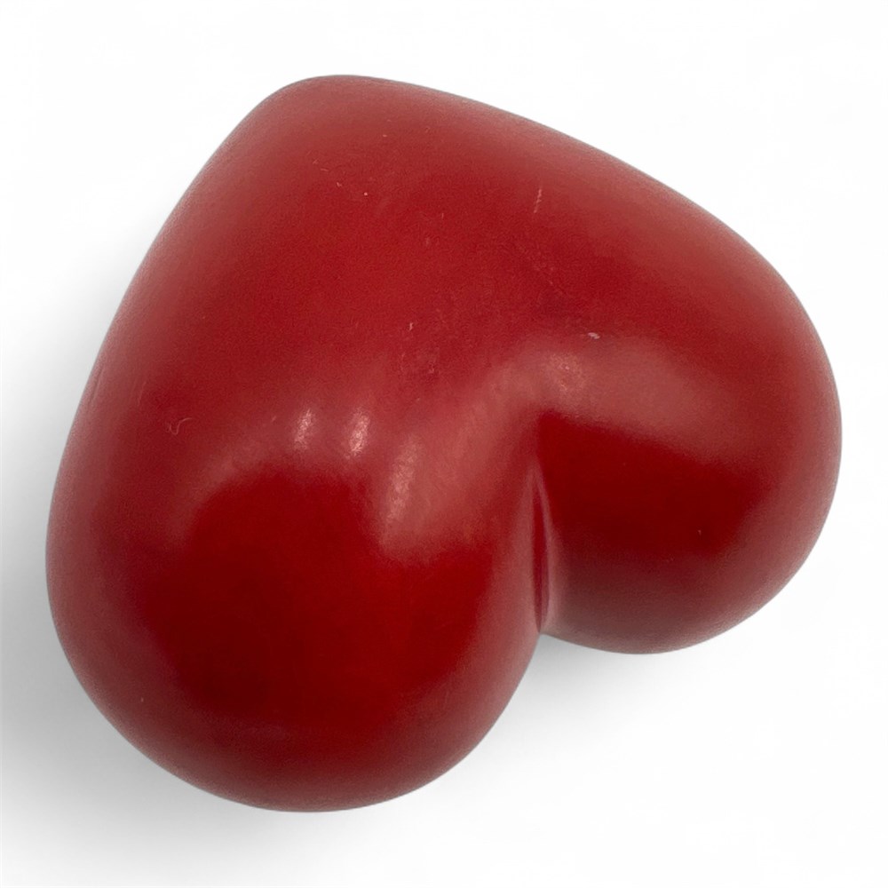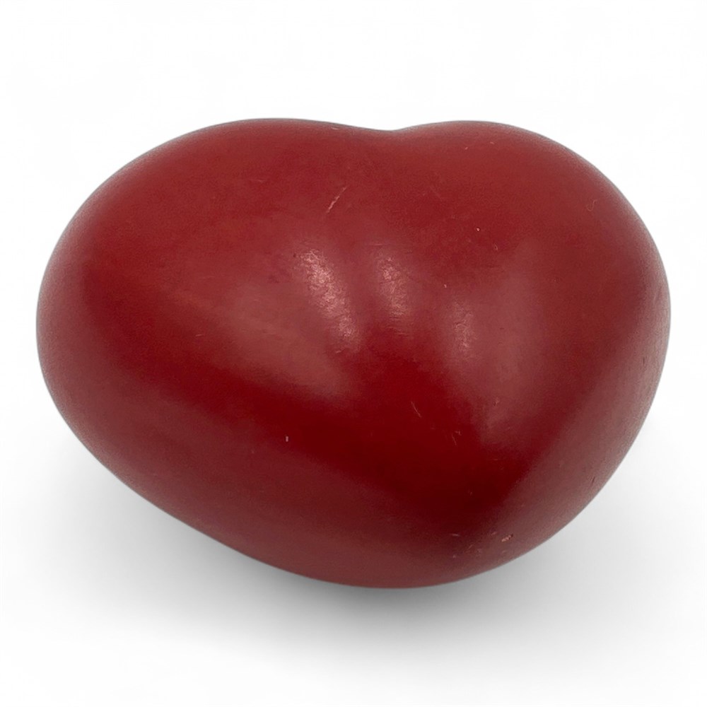 Polished heart-shaped stone. Associated with unconditional love, compassion, and the heart chakra in crystal healing practices. Often used as "worry stones" or "palm stones" due to their smooth, tactile finish. Sold as decorative objects, often for shelves, desks, or nightstands. 3" W x 2.5" H x 2" L Good condition.
