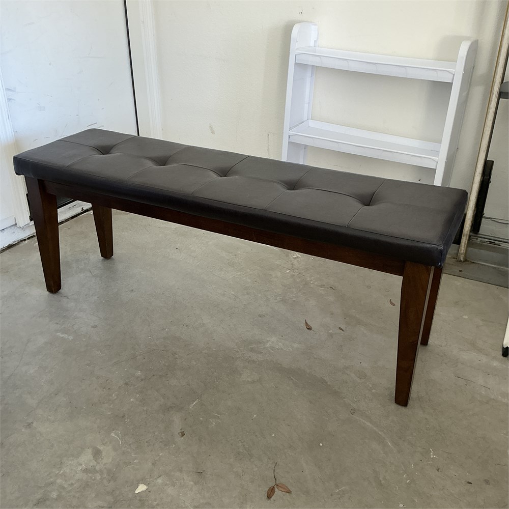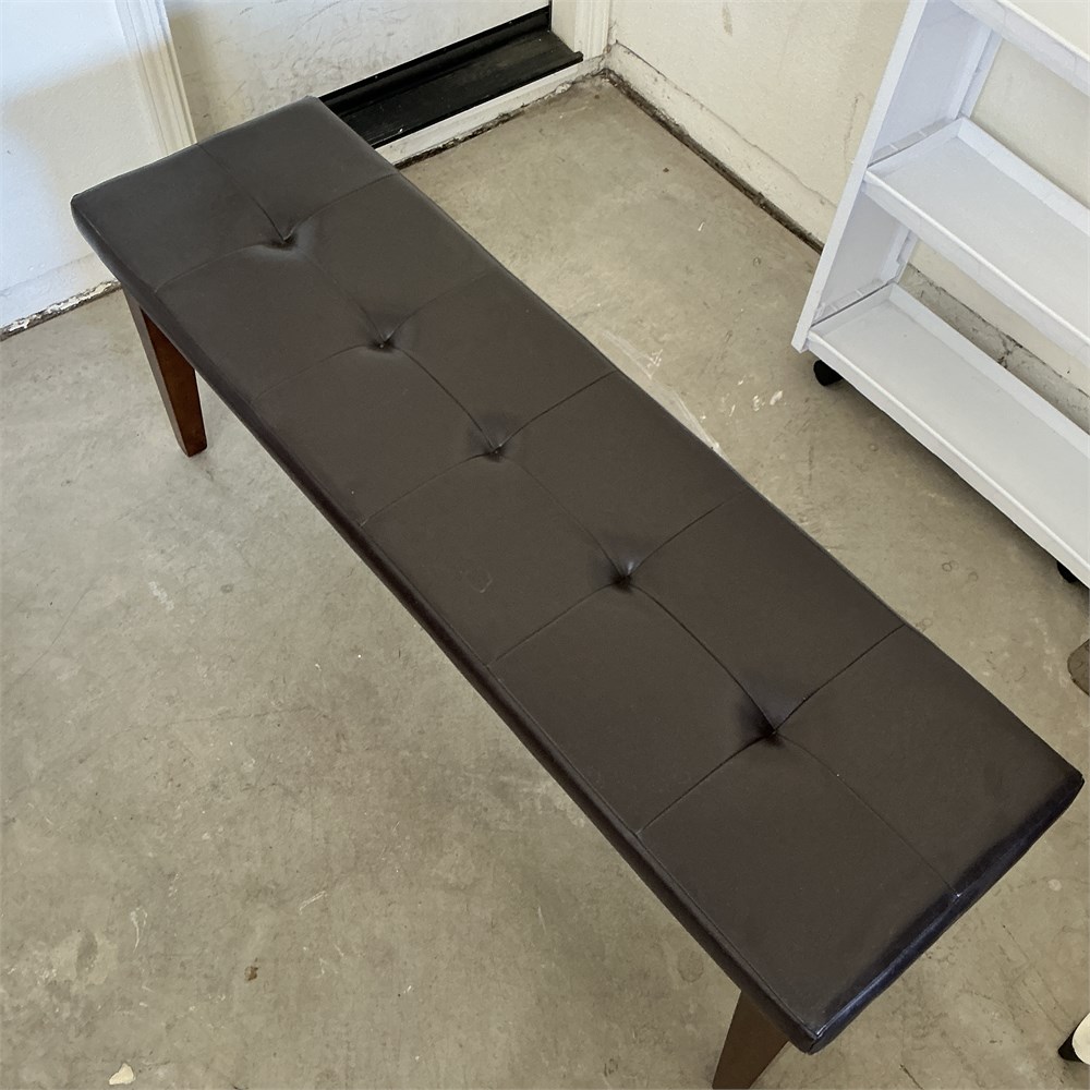 A button-tufted seat upholstered in faux leather (PU) with a sturdy solid wood frame. It is designed for use in dining rooms, entryways, or at the end of a bed. Acacia or rubberwood frames with foam-cushioned seats. 30" L x 15" W 19.5" H Good condition.