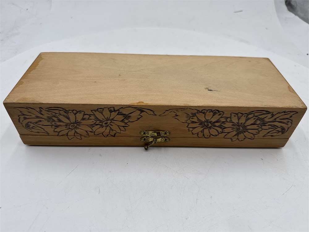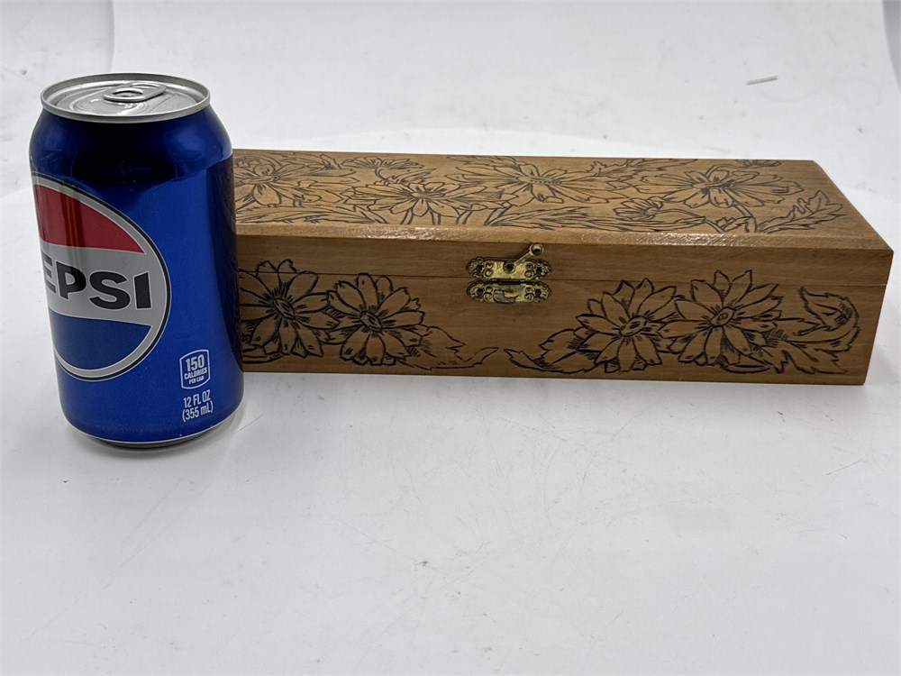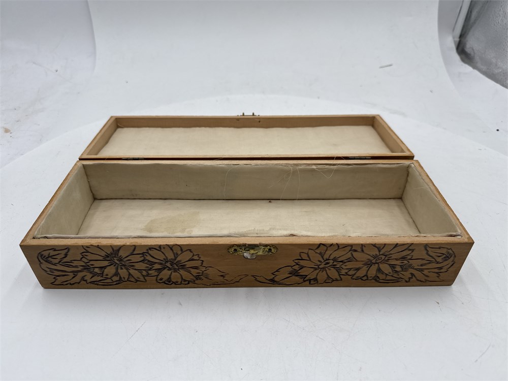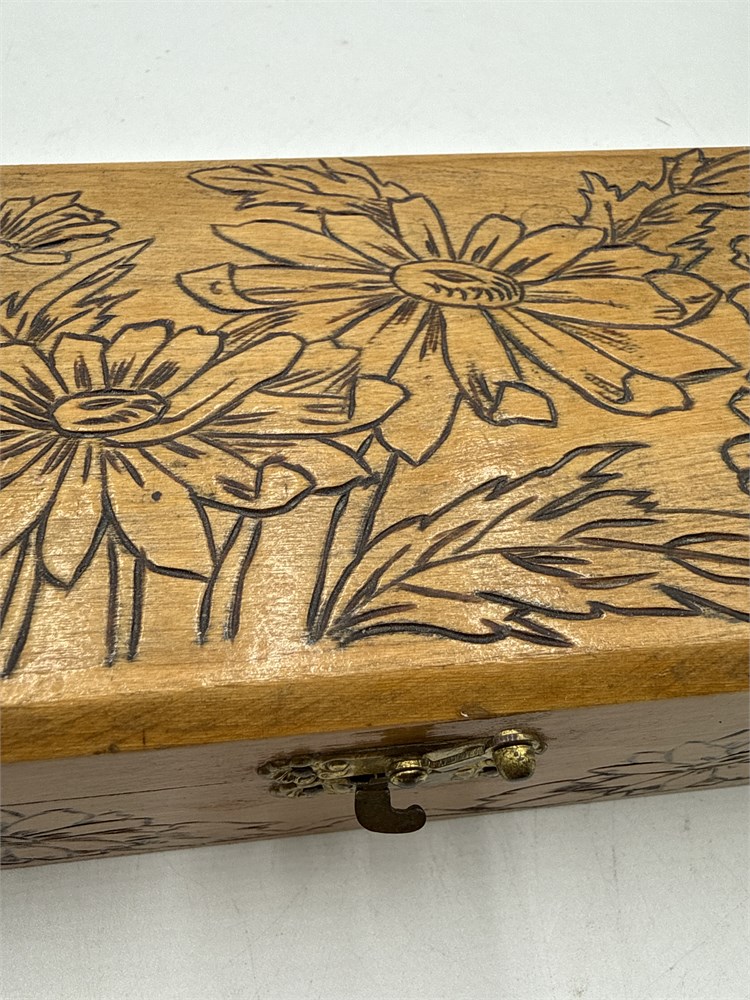Wood Jewelry/Trinket Box With Pyrographic Floral Pattern View Watchlist >